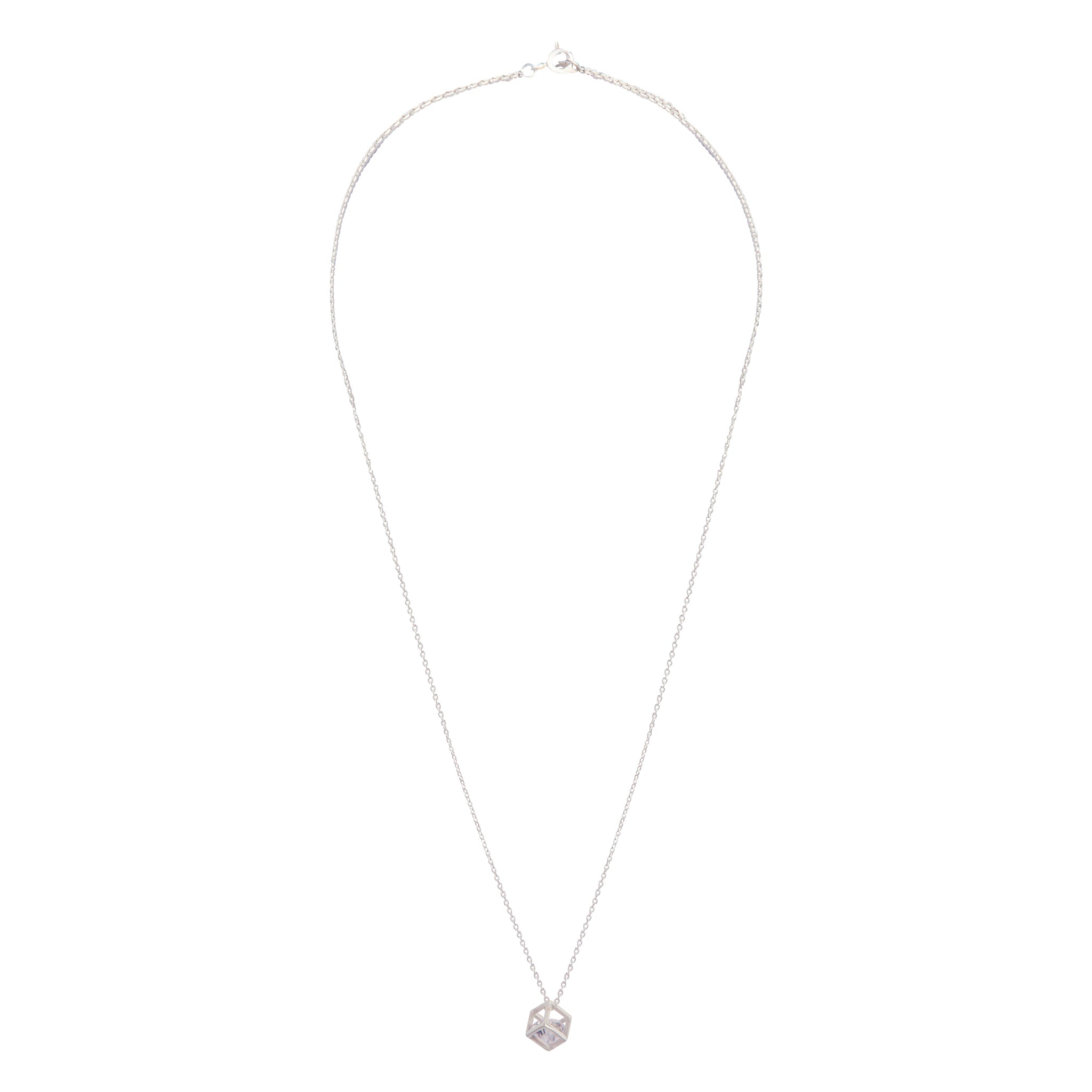 Add simple charm to your look with this elegant design of a glass bead lose inside a cube cage.