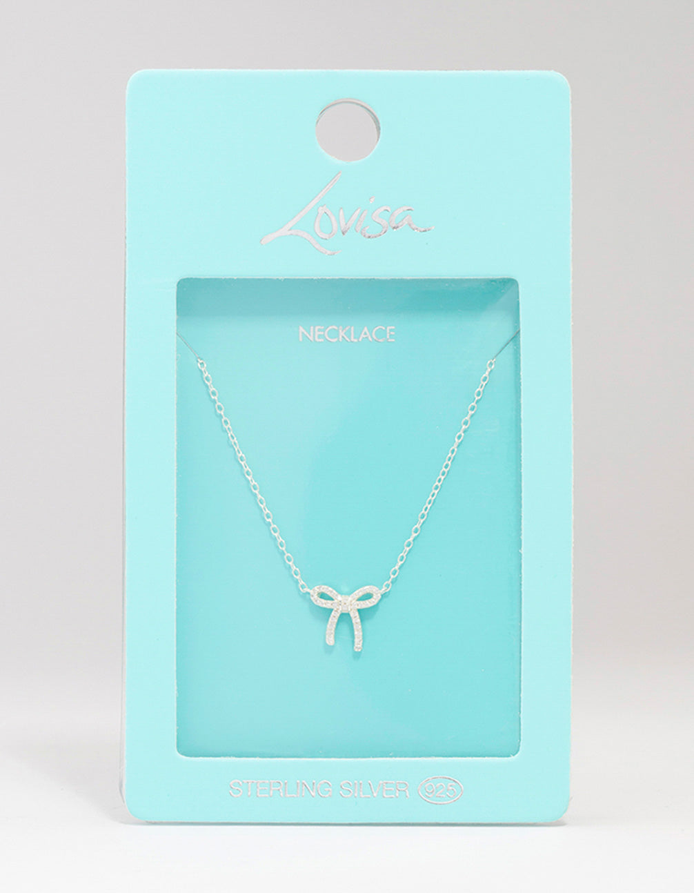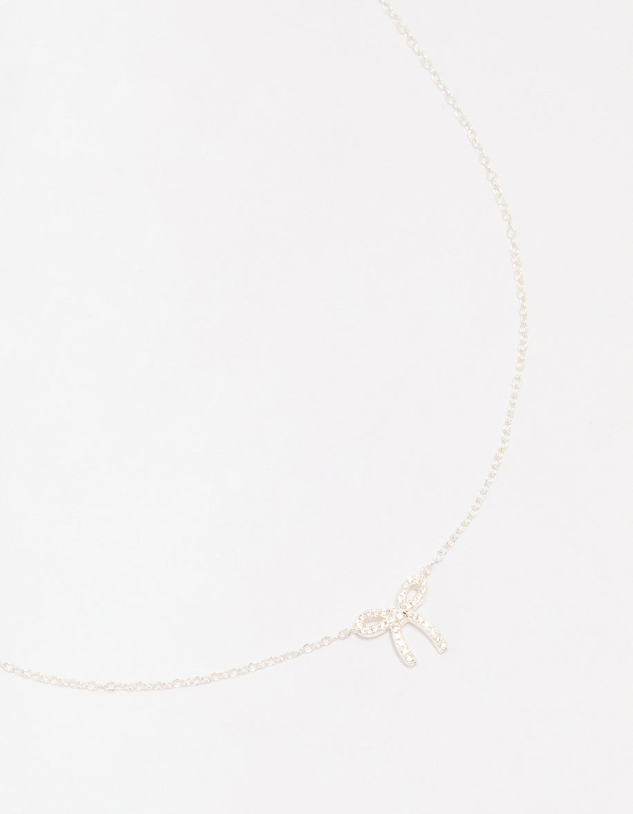 Sterling Silver Cubic Zirconia Bow Pendant Necklace