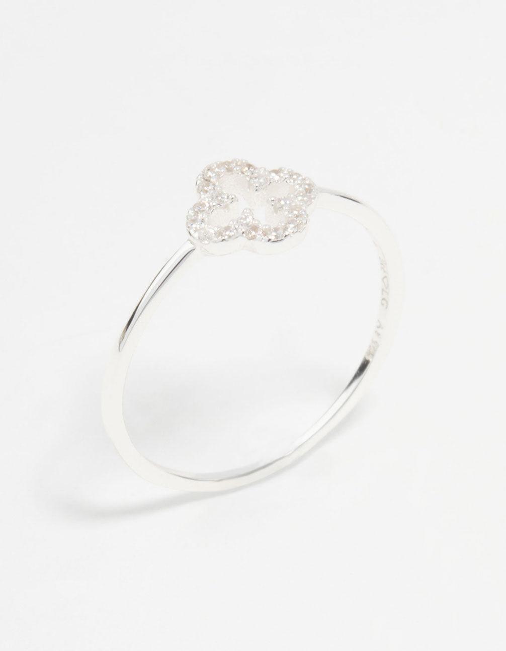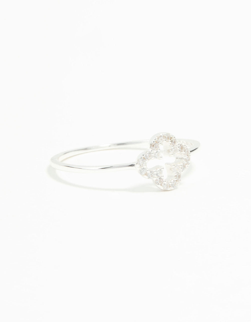 Enhance your look with this sterling silver clover ring. This ring features sparkling cubic zirconia crystals and a flower design for a charming look.