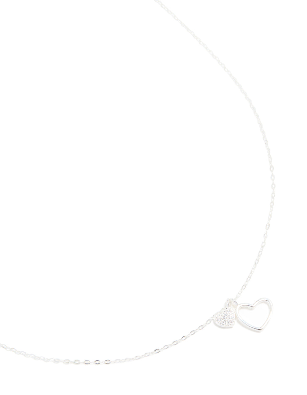 Add a touch of elegance to your look with this Sterling Silver Cubic Zirconia Double Heart Necklace. This stunning necklace features a delicate sterling silver chain and two intertwined heart pendants – one adorned with shimmering cubic zirconia crystals and the other in a sleek open-heart design. Perfect for everyday wear or special occasions, this necklace is a versatile addition to any jewellery collection. Pair it with a flowy dress for a romantic vibe or layer it with other sterling silver necklaces for a cool, stacked look. Whether you're heading to a dinner date, a wedding, or simply want to elevate your casual outfit, this timeless necklace is sure to shine.