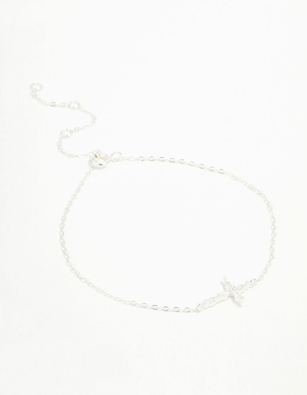 Sterling Silver Cubic Zirconia Horizontal Cross Bracelet