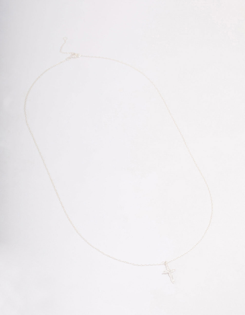 For a signature addition to your look, style this dainty pendant necklace. This chain is crafted from genuine sterling silver and features a cubic zirconia encrusted cross. Perfect for styling in your everyday stack!