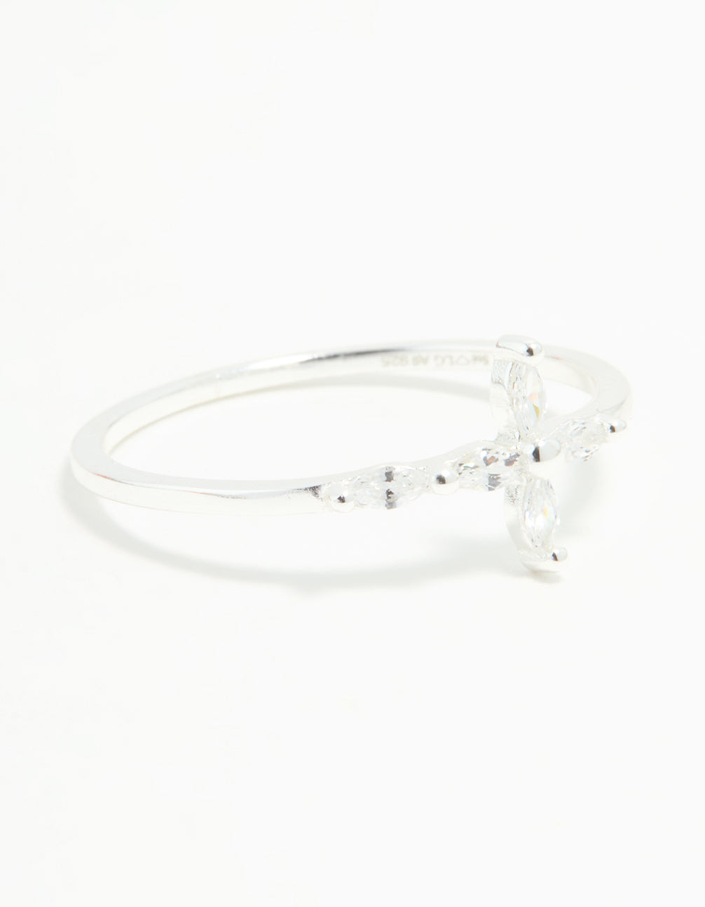 Sterling Silver Cubic Zirconia Marquise Cross Ring