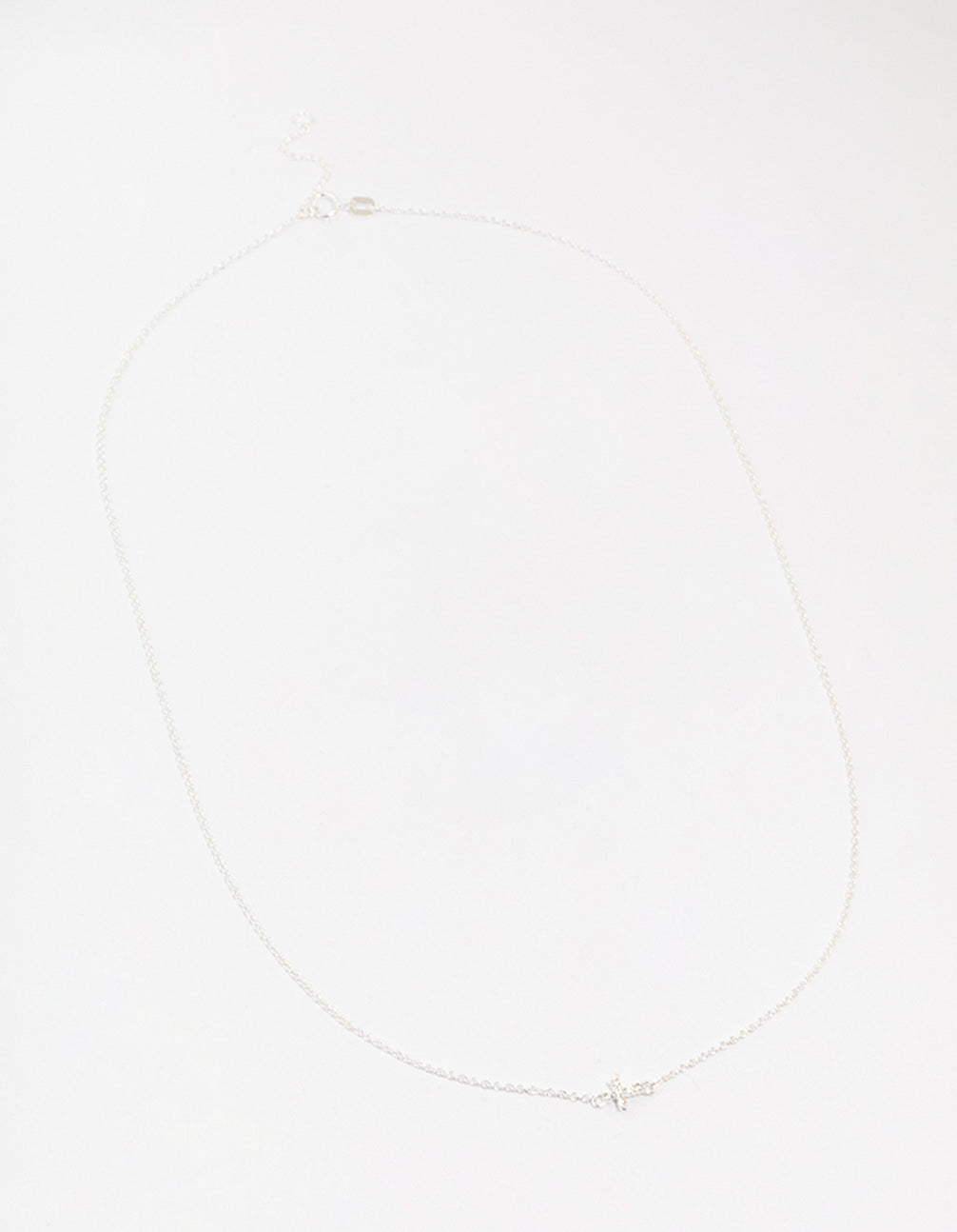 Sterling Silver Cubic Zirconia Mini Cross Pendant Necklace