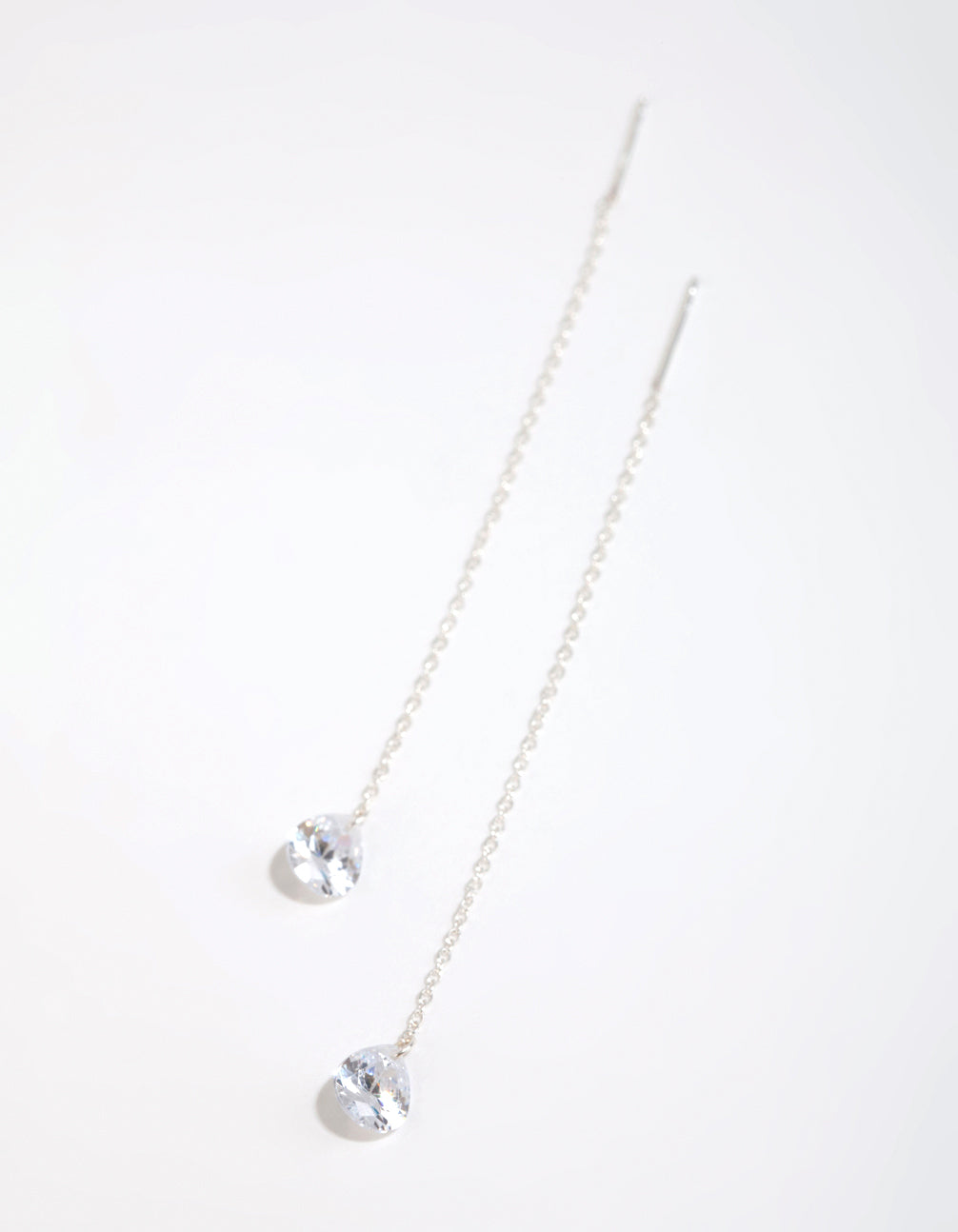Sterling Silver Cubic Zirconia Teardrop Thread Through Earrings
