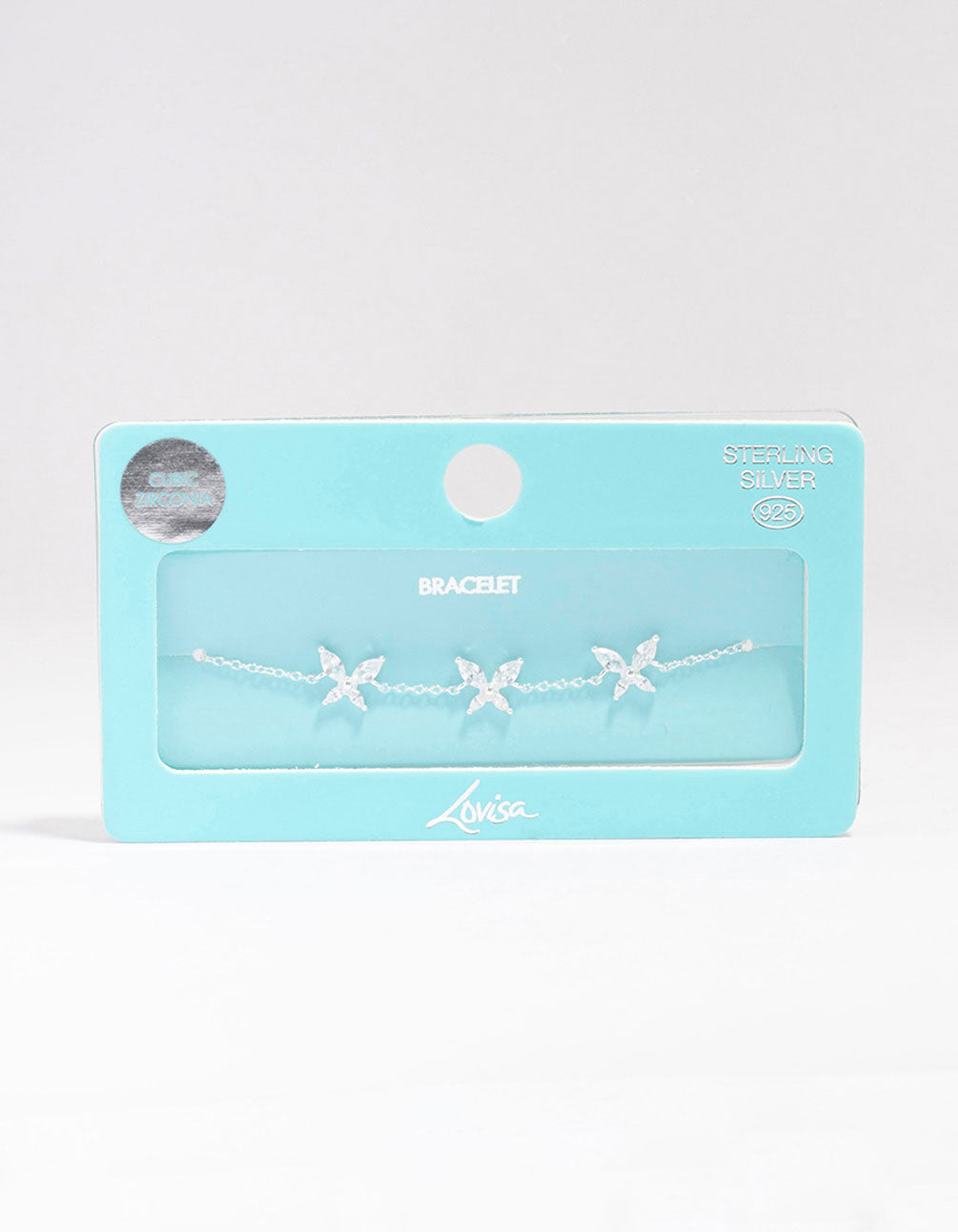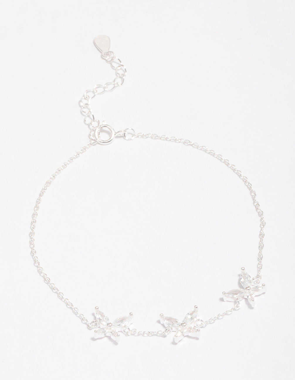 Sterling Silver Cubic Zirconia Triangular Butterfly Bracelet
