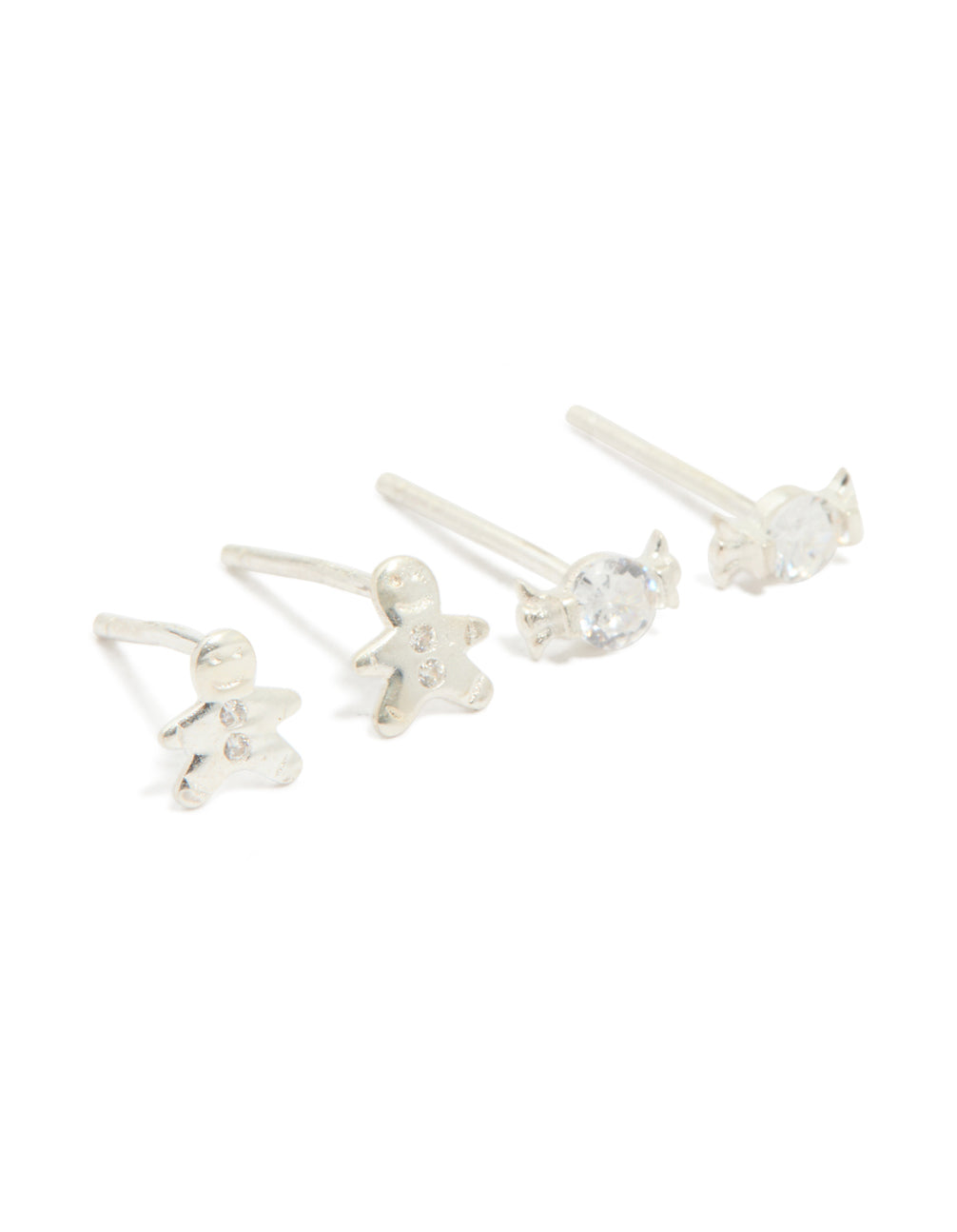 Add a sprinkle of festive fun to your jewellery collection with this Sterling Silver Cubic Zirconia Xmas Gingerbread Man & Candy Stud Earrings Pack. This charming set includes two pairs of sterling silver stud earrings: one featuring adorable gingerbread men and the other shimmering candy-shaped studs adorned with dazzling cubic zirconia crystals. Perfect for adding a playful yet elegant touch to your festive outfits, these earrings are crafted with sterling silver for a timeless finish.