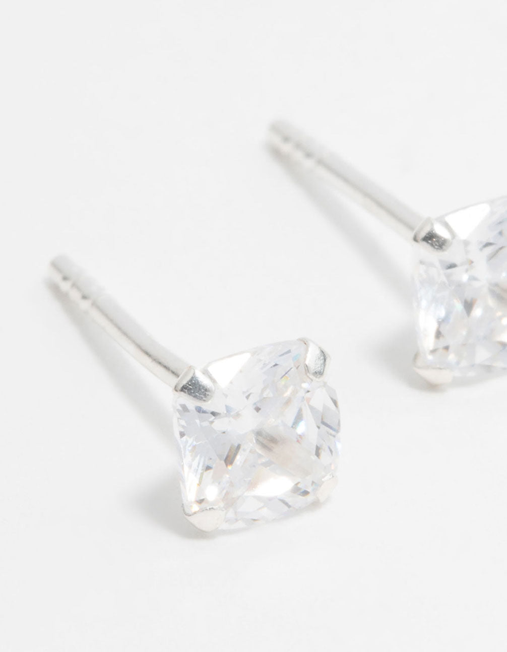 Sterling Silver Cubic Zirconia Cushion Cut Stud Earrings