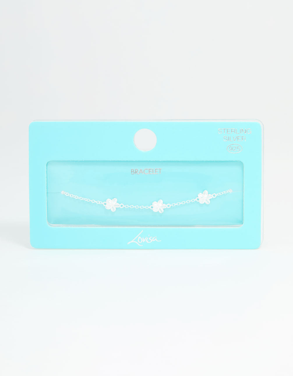 Elevate your look with this Sterling Silver Flower Trio Bracelet, the perfect blend of elegance and charm. Crafted from sterling silver, this dainty bracelet features three delicate flower motifs, making it a timeless piece of wristwear. Whether you're dressing up for a party, heading to brunch, or adding a touch of sparkle to your everyday outfit, this bracelet fits the vibe. Pair it with a flowy dress for a romantic look, or stack it with other bracelets for a stylish layered style. Ideal for those who love chic, versatile jewellery, this floral-inspired bracelet is a must-have accessory!