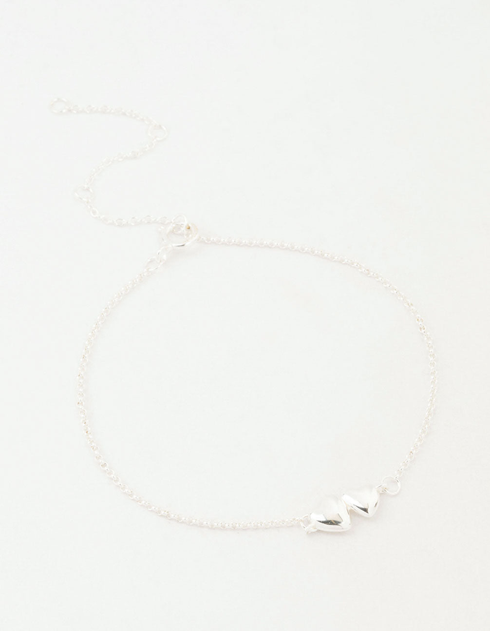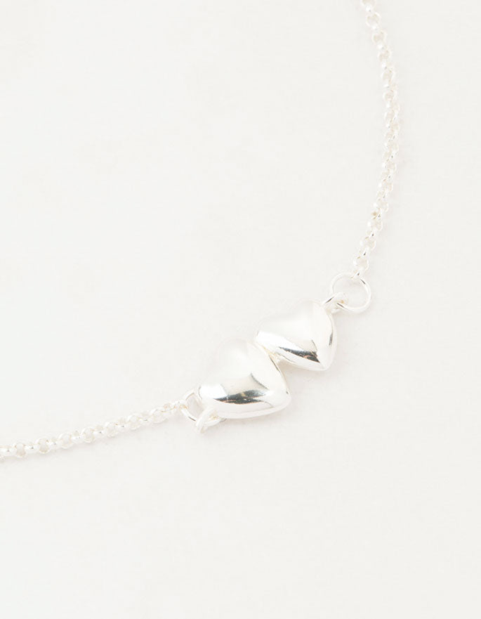 Sterling Silver Paired Puffy Heart Bracelet