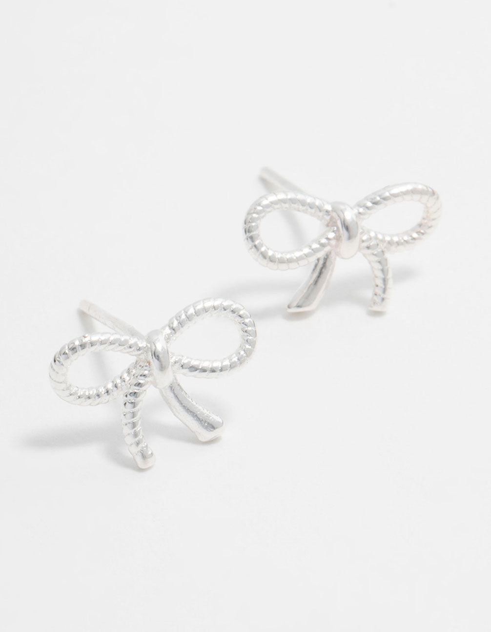 Add a touch of timeless elegance to your jewellery collection with these Sterling Silver Textured Bow Stud Earrings. Perfectly crafted from sterling silver, these dainty stud earrings feature a chic bow design with a textured finish for extra charm. Whether you're dressing up for a party or adding a playful twist to your everyday outfit, these earrings are your go-to accessory. Pair them with a casual blouse and jeans for a cute, understated look or with a sleek dress for a polished vibe. Lightweight and versatile, these bow-shaped studs are perfect for any occasion, from brunch dates to evening outings. A must-have for anyone who loves stylish, feminine jewellery!