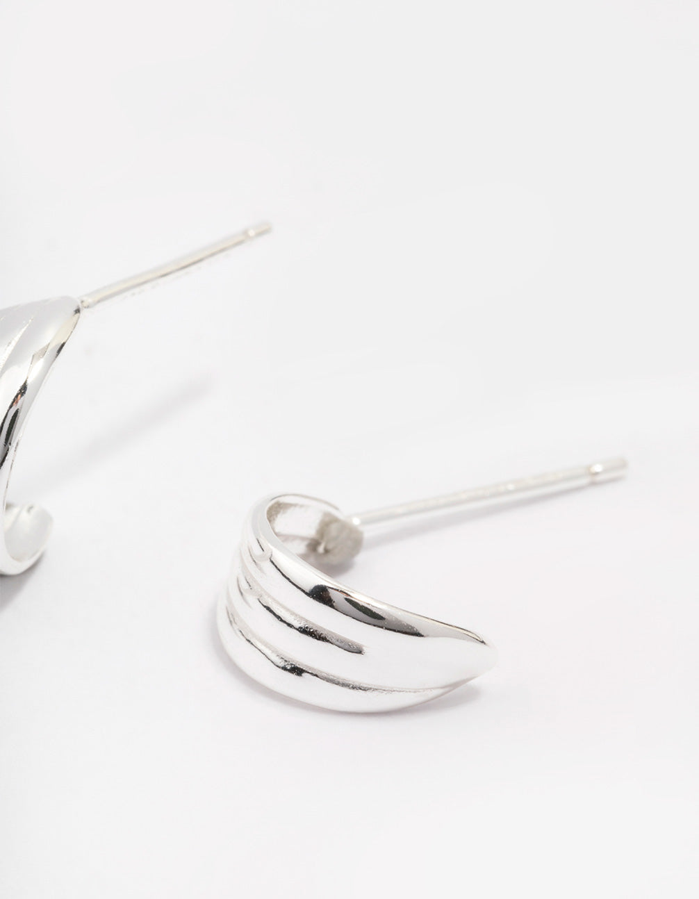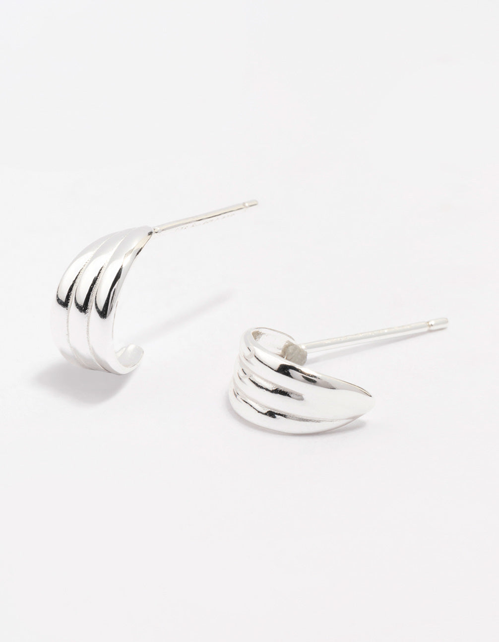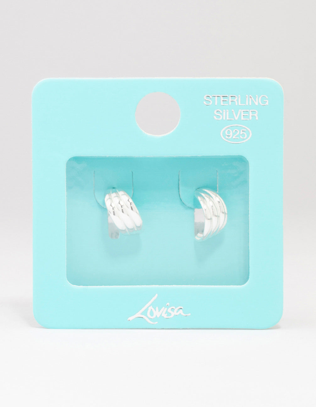 These mini huggie hoops feature a textured, layered design. Perfect for adding dimension to your stack!