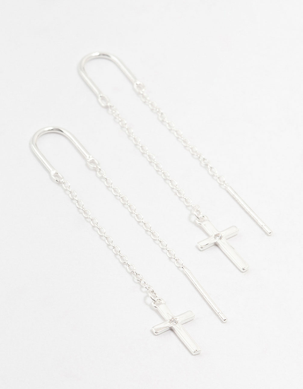 Elevate your signature style with stunning sterling silver pieces. Stay stylish and comfy with these easy-to-wear thread-through drop earrings. Crafted from genuine 925 sterling silver, they feature a chic cross motif, perfect for adding simple glam.