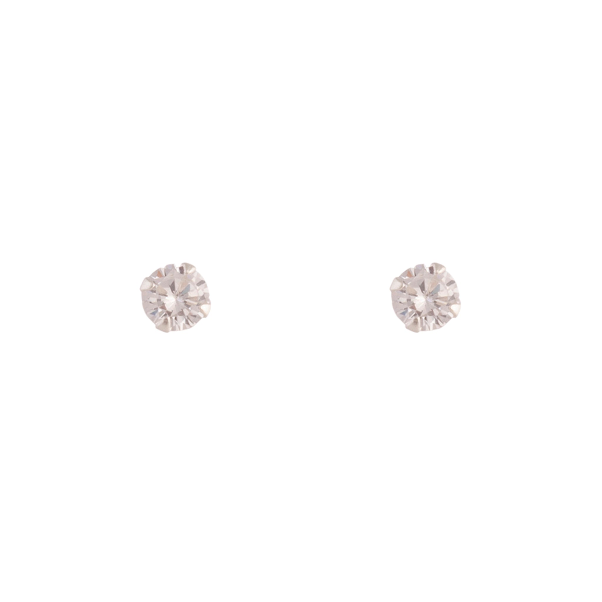 A pair of tiny cubic zirconia sterling silver stud earrings.