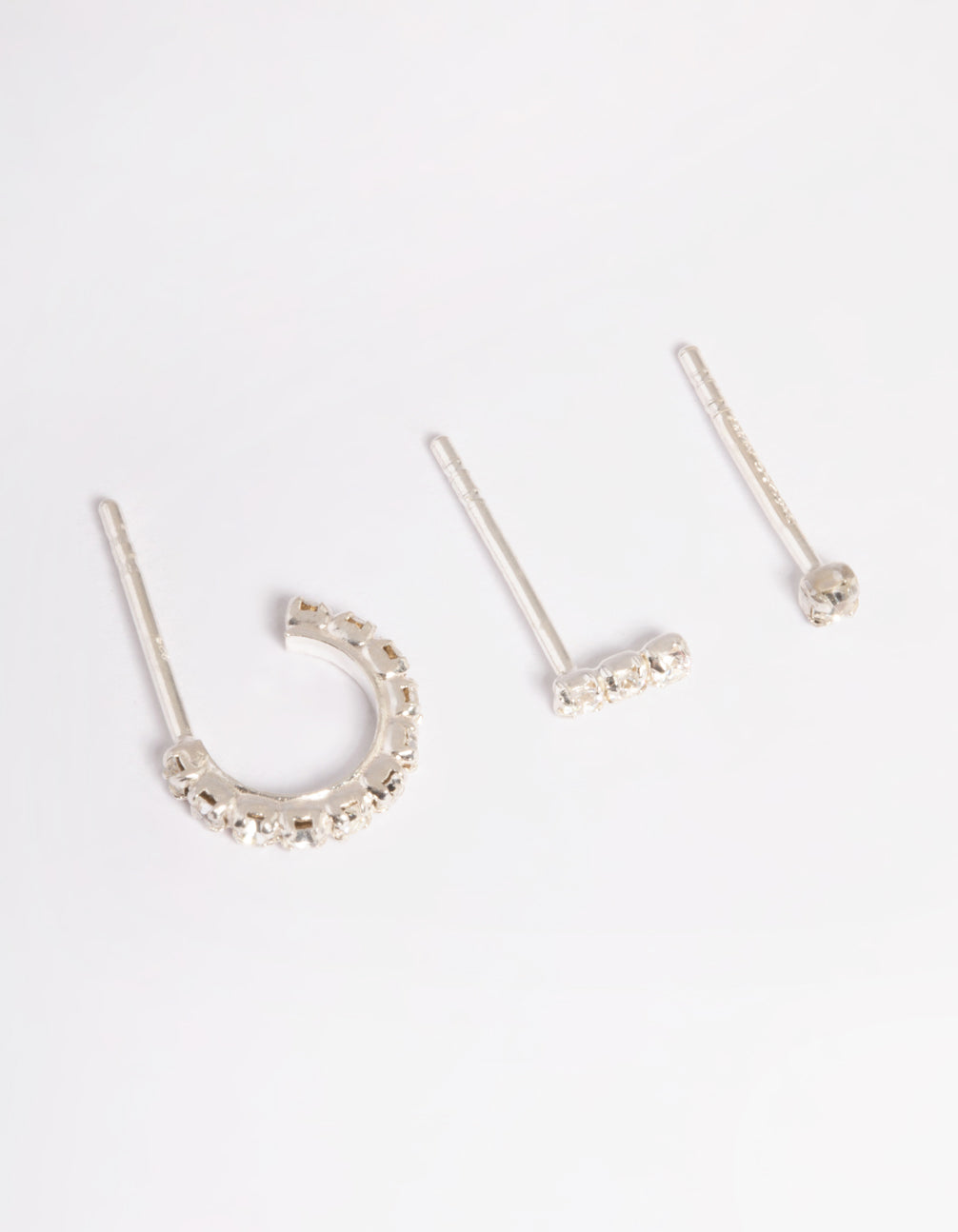 Sterling Silver Cubic Zirconia Curve Earring Stud Pack