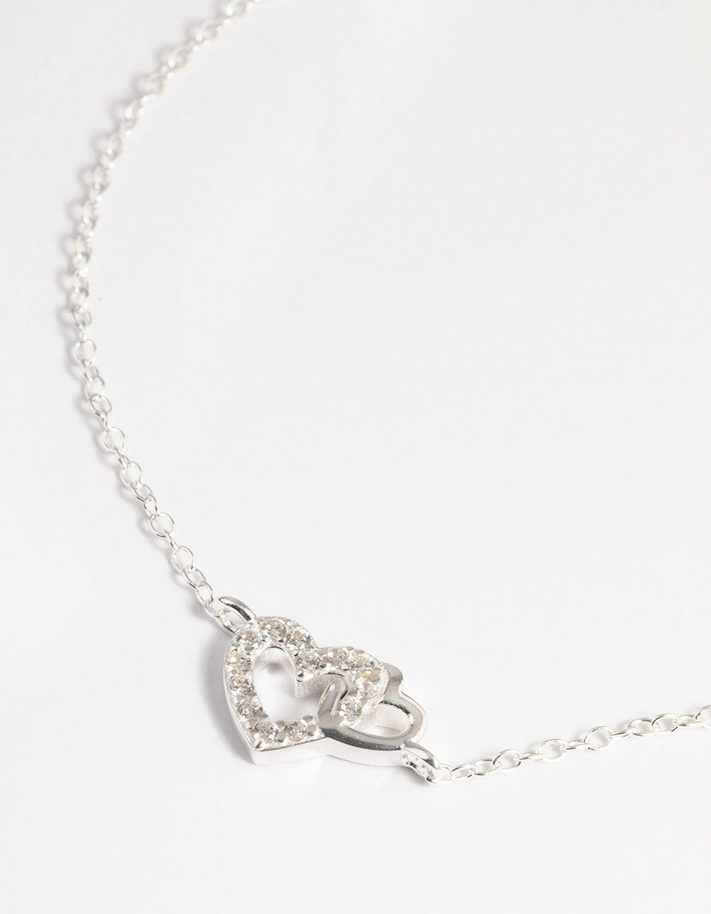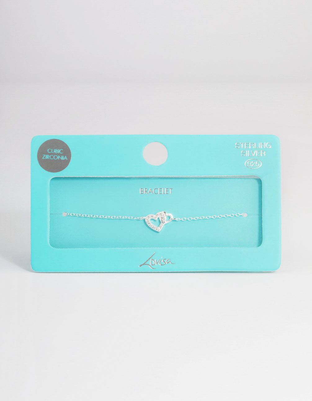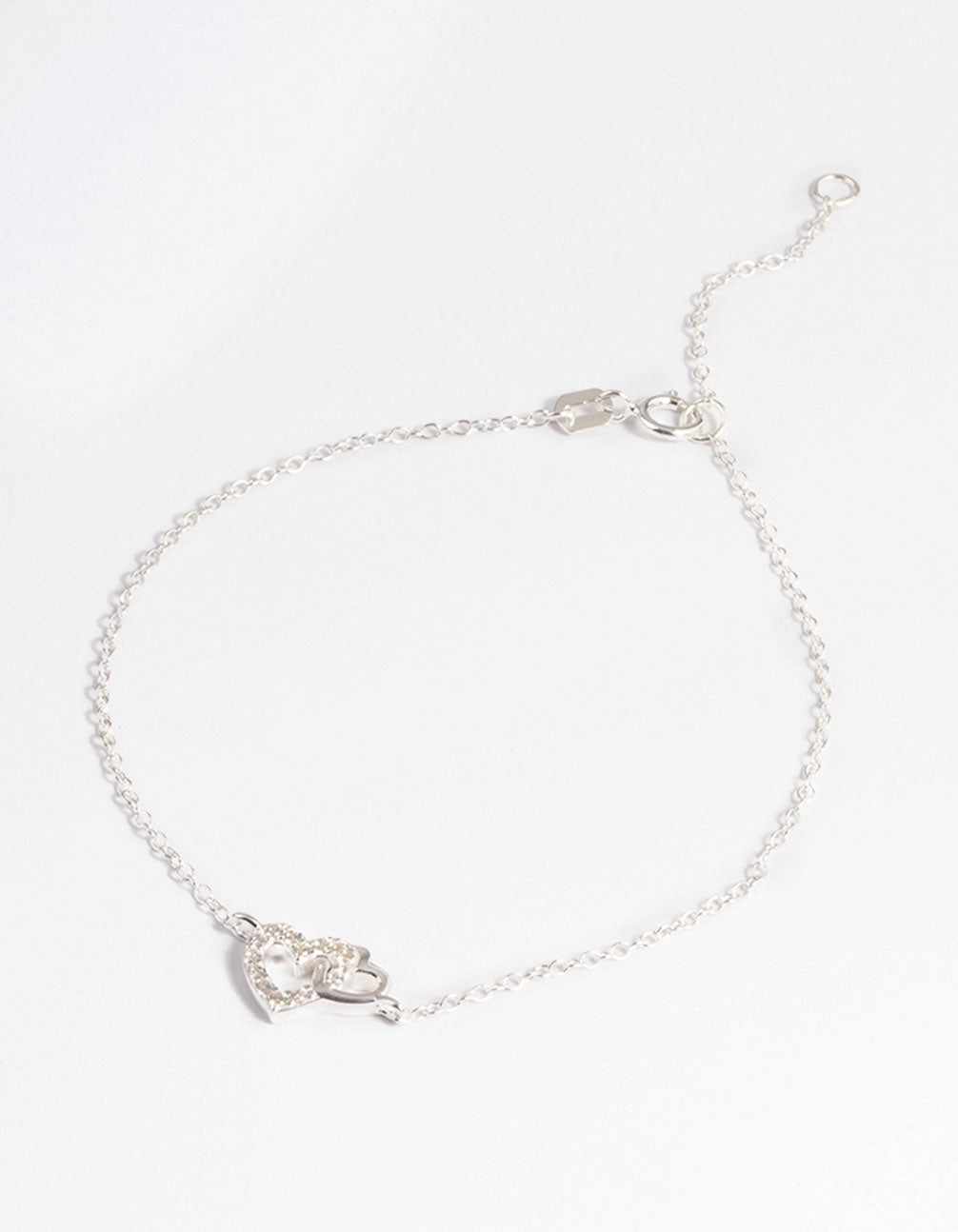Sterling Silver Cubic Zirconia Heart Link Bracelet
