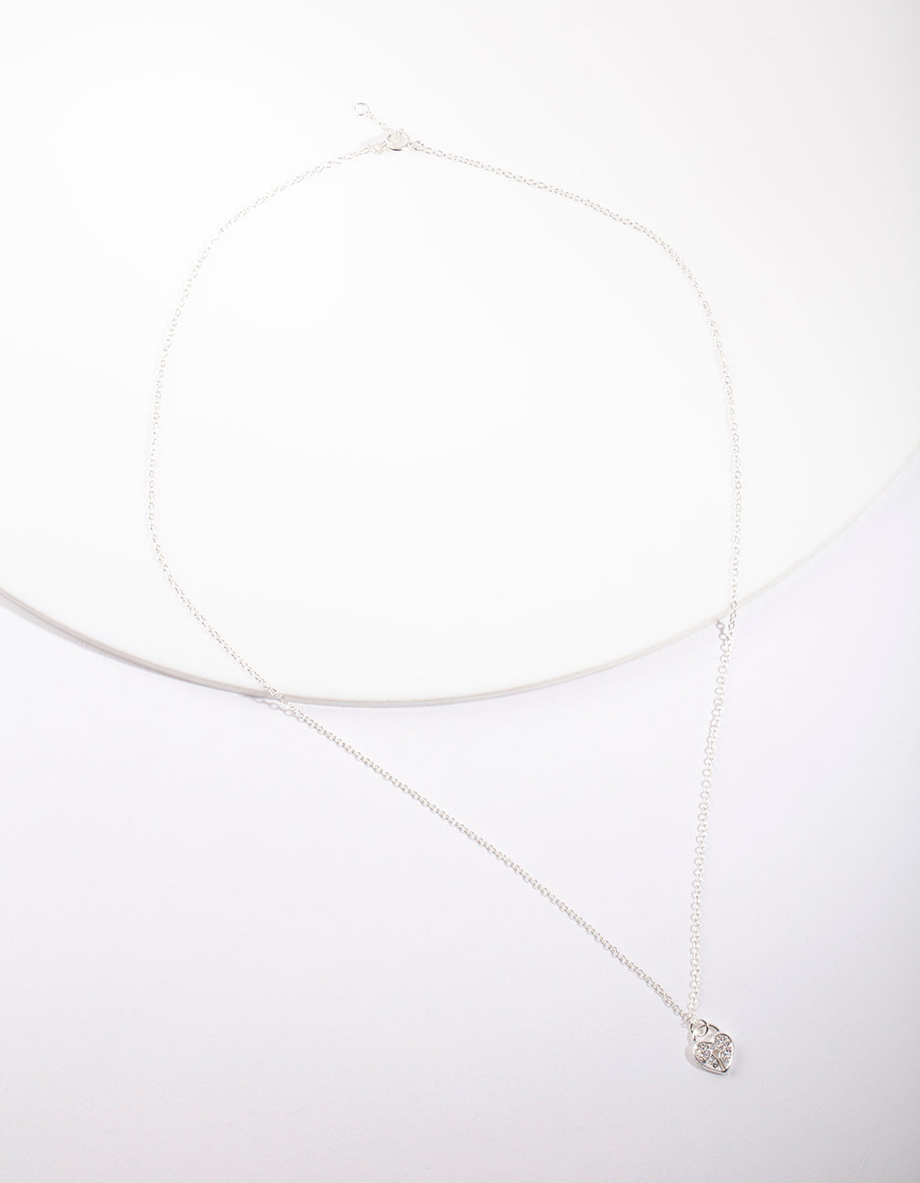 Sterling Silver Cubic Zirconia Padlock Necklace