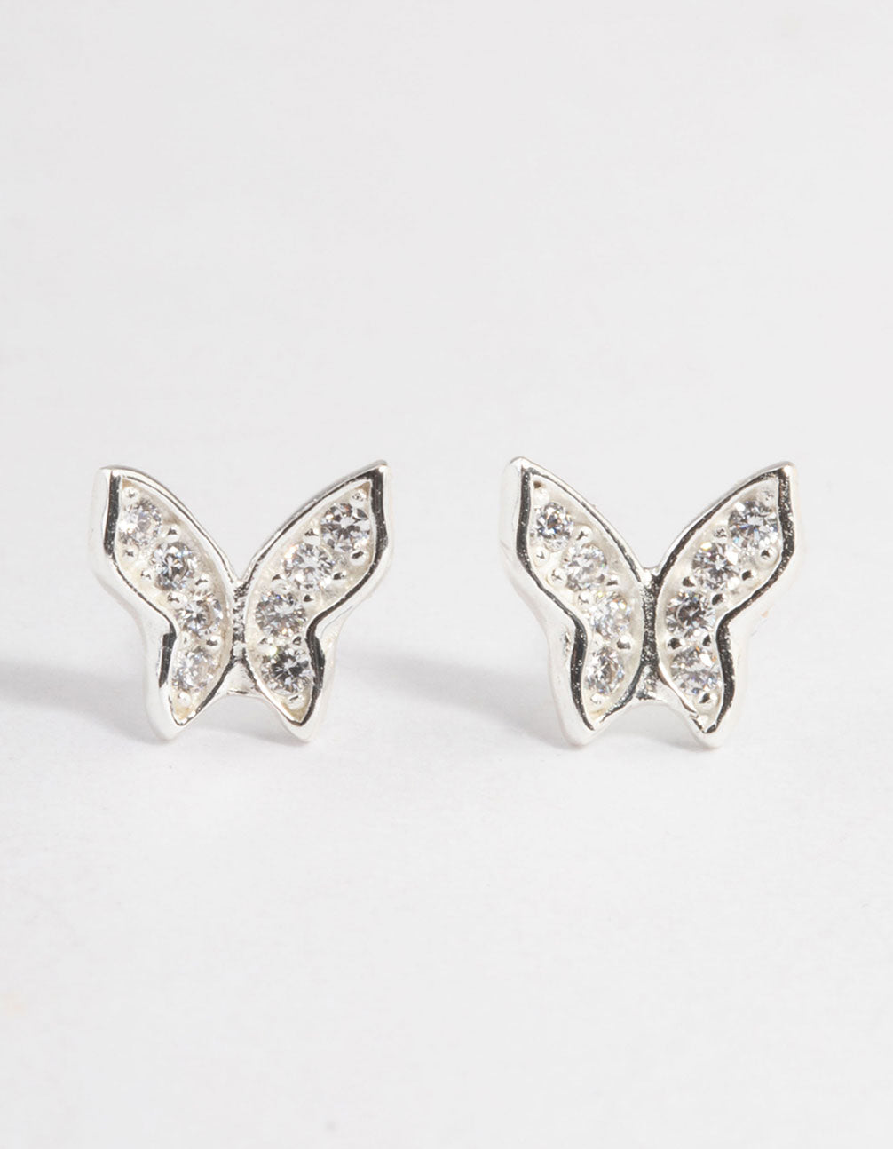 Sterling Silver Cubic Zirconia Pave Butterfly Stud Earrings