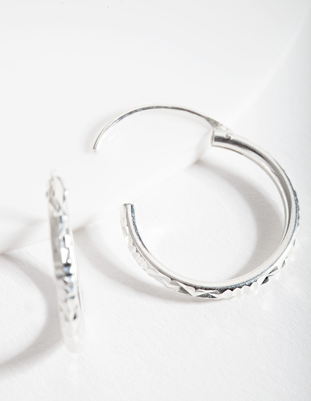 Sterling silver jewellery is the perfect way to add some everyday style to your collection. This pair of hoop earrings boast a textured design.