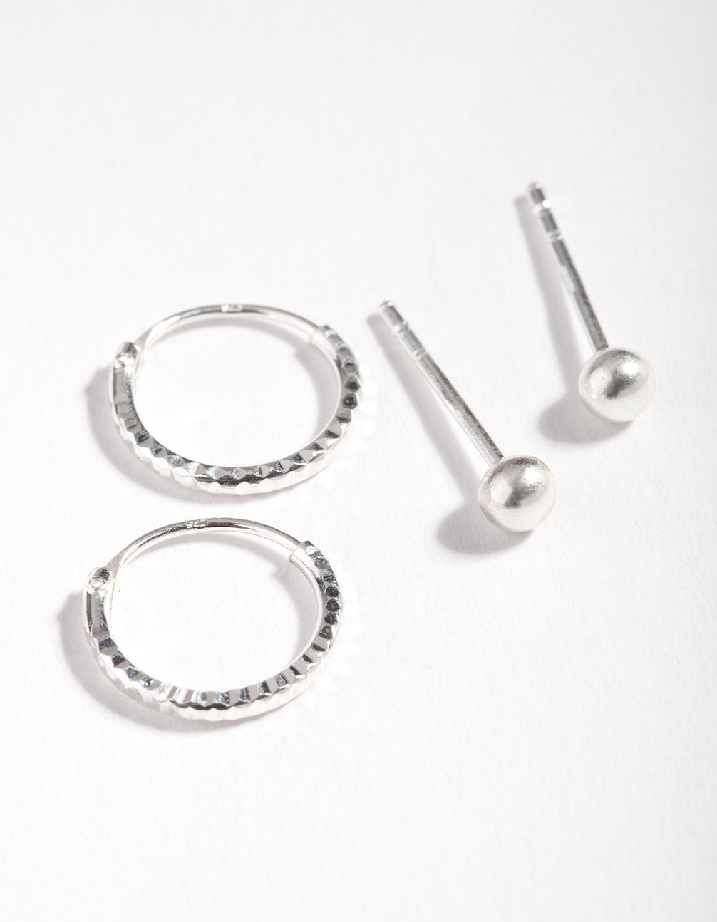 Sterling Silver Mini Textured Hoop Stud Earring Pack