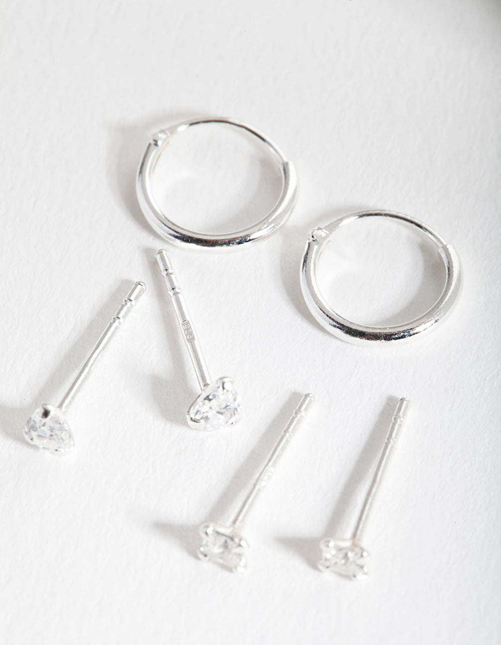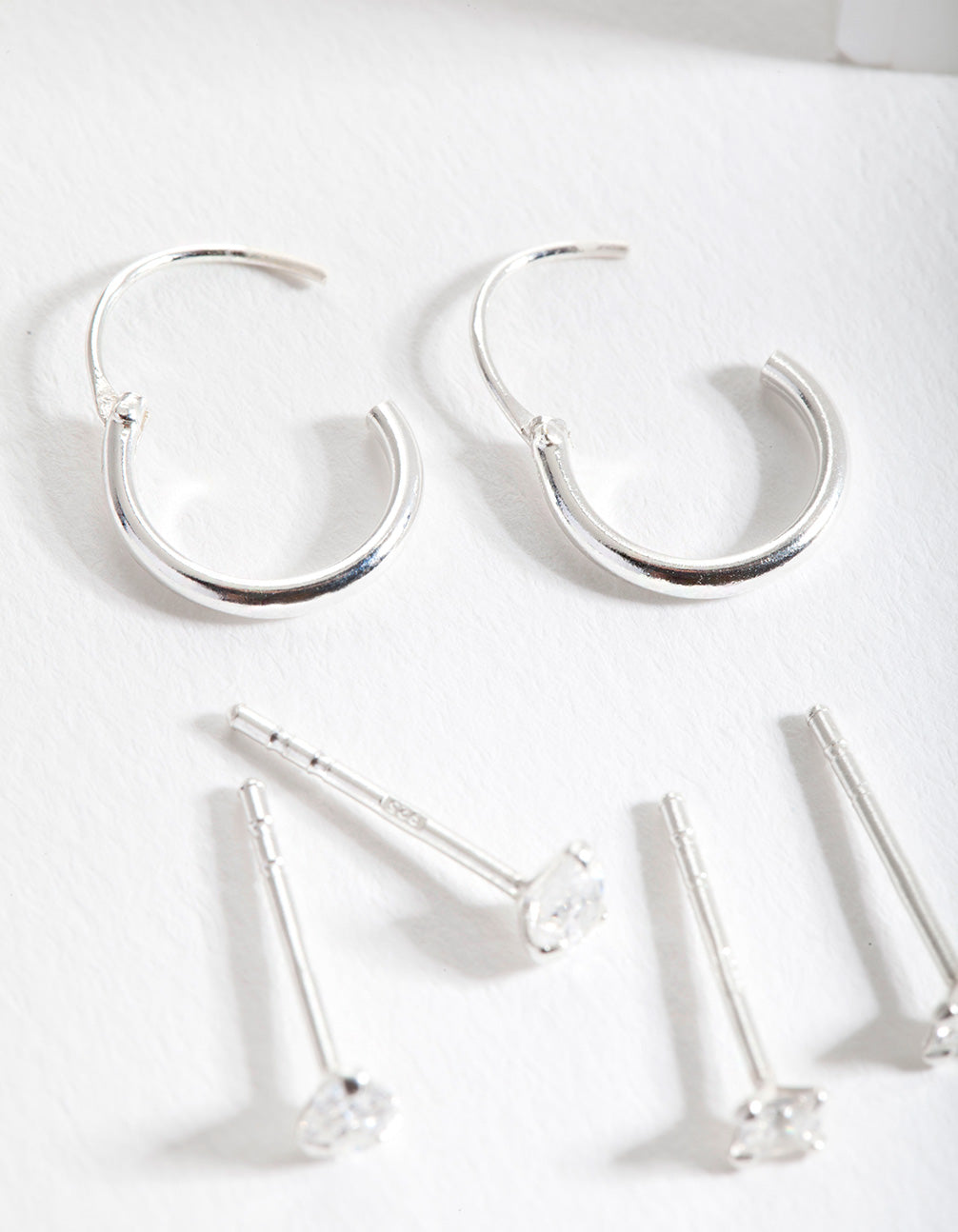 Sterling Silver Cubic Zirconia Stud & Hoop Earring Pack