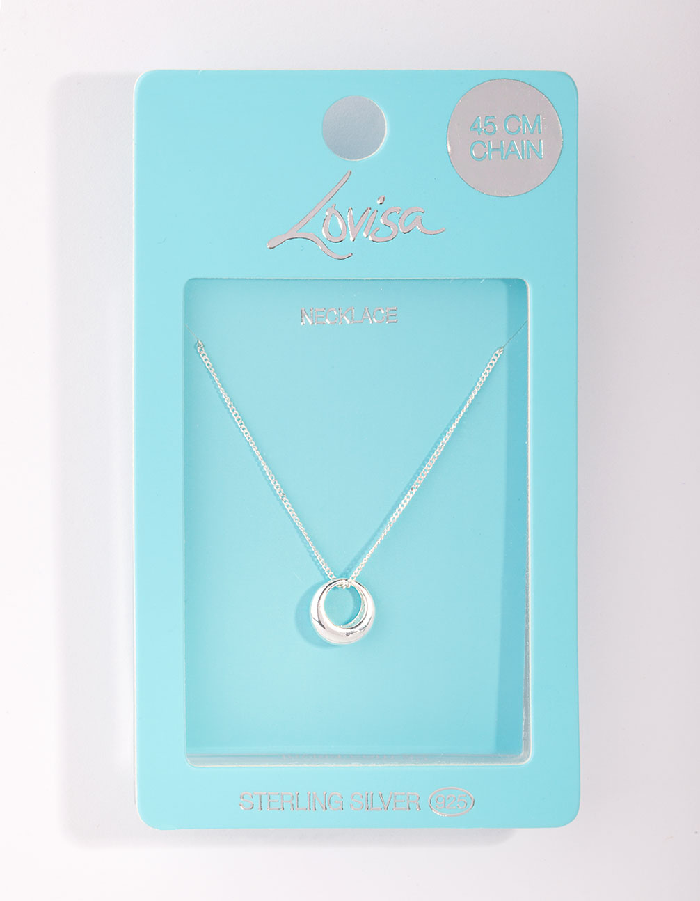 Sterling silver accessories are both reliable and fashionable. Complete your collection with high quality sterling silver pieces. This classic necklace is 45cm long and boasts a wrapped open circle design.