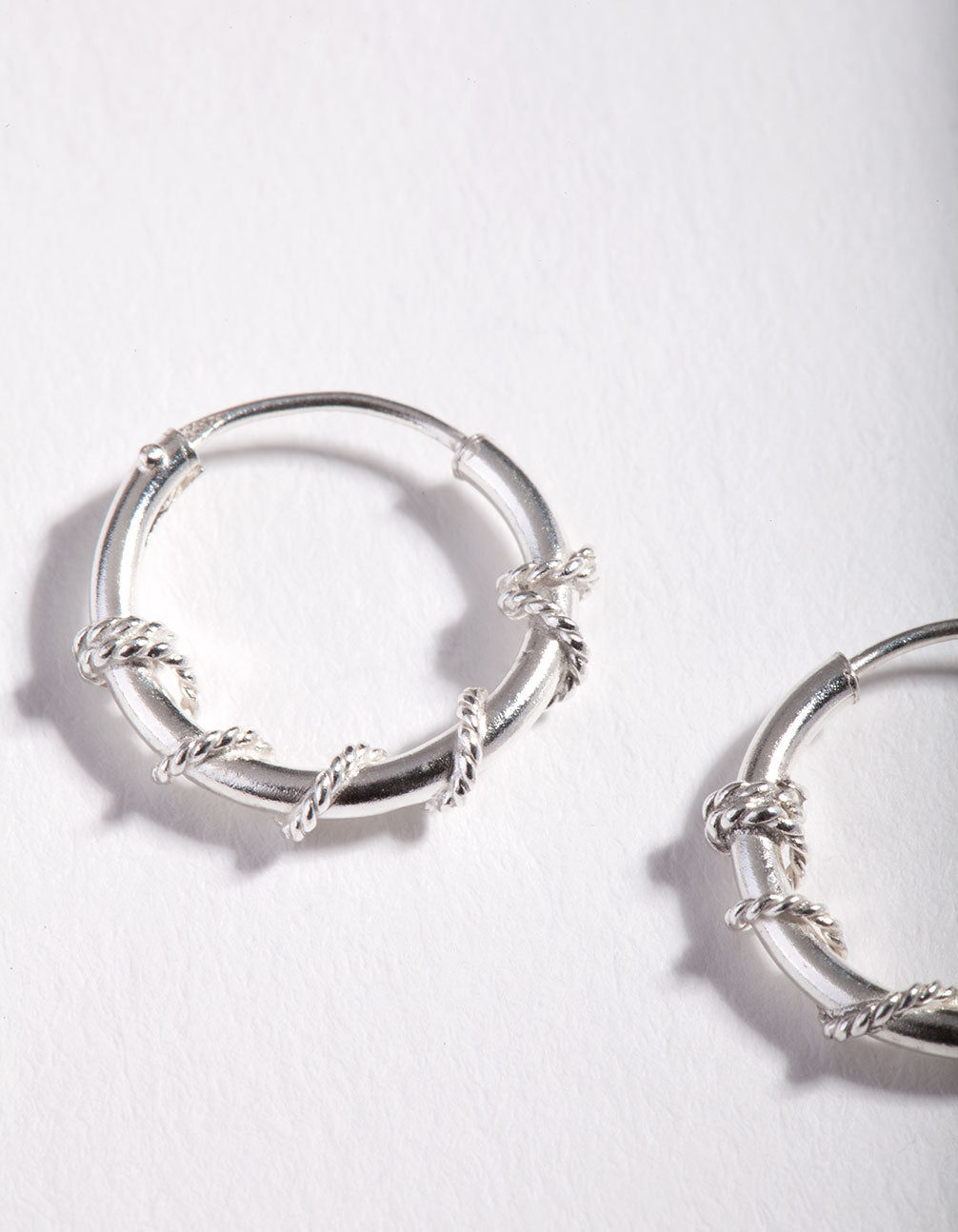 Classic, bold, and always on-trend, sterling silver jewellery pieces will round out your collection and become your new daily staples. Style up your wardrobe with go-to styles made with precious metals. This pair of small hoop earrings closely hug the ear and feature a textured wrap-around rope design.