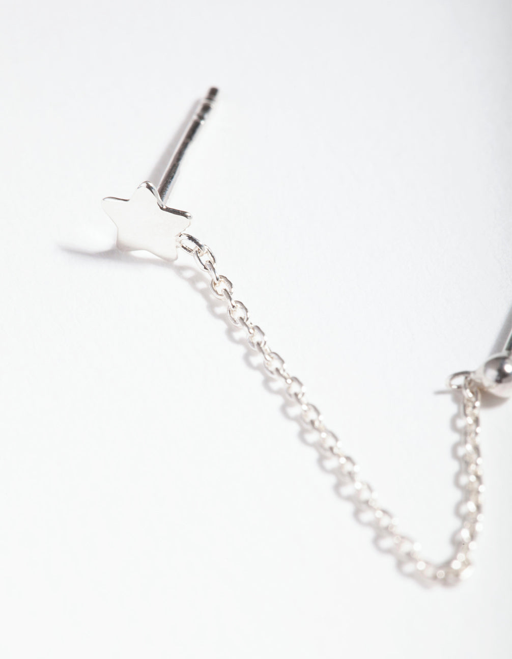 Classic, bold, and always on-trend, sterling silver jewellery pieces will round out your collection and become your new daily staples. Style up your wardrobe with go-to styles made with high-quality materials. This stud is designed to sit between two piercings and boasts a chain linked design with a celestial star motif.