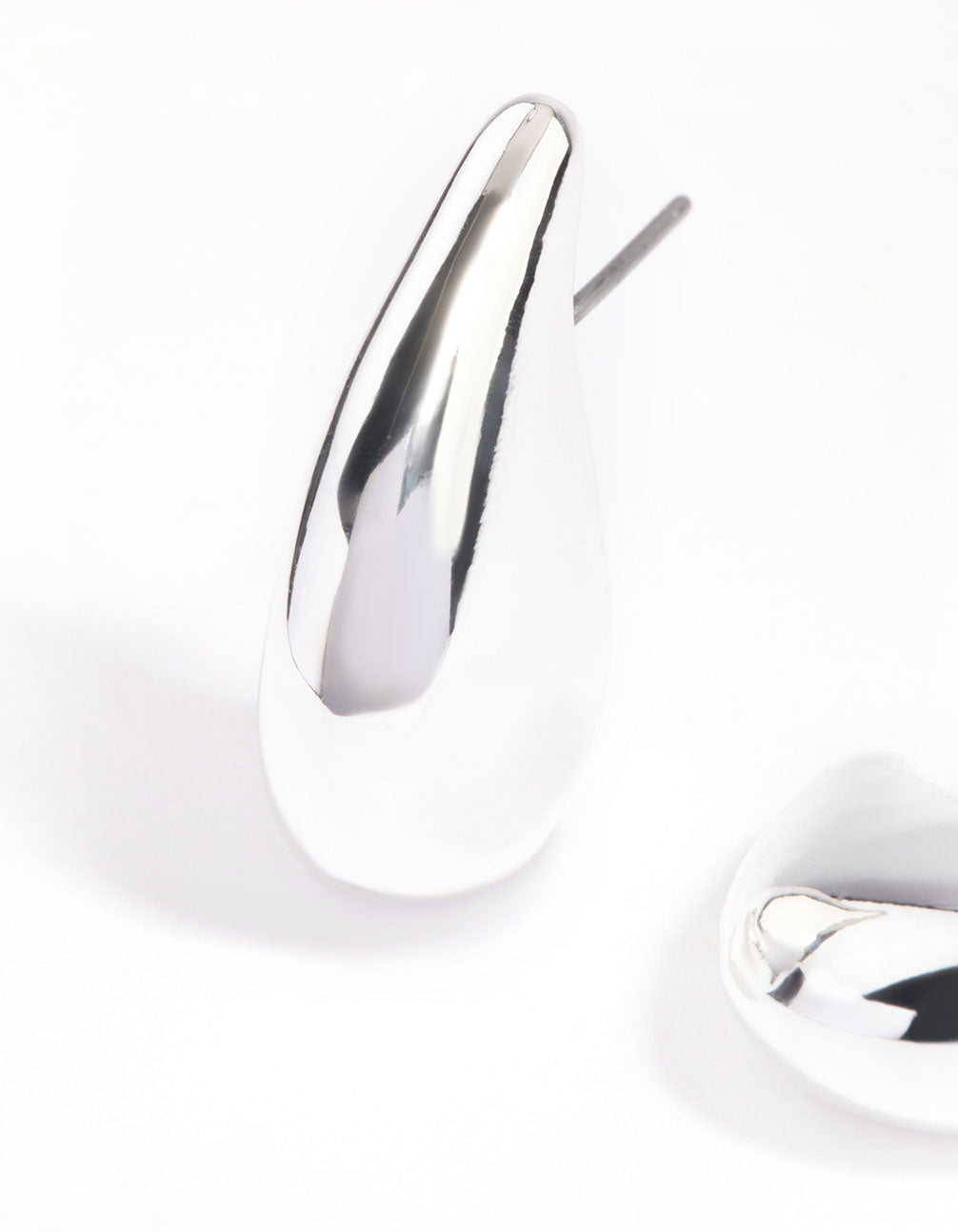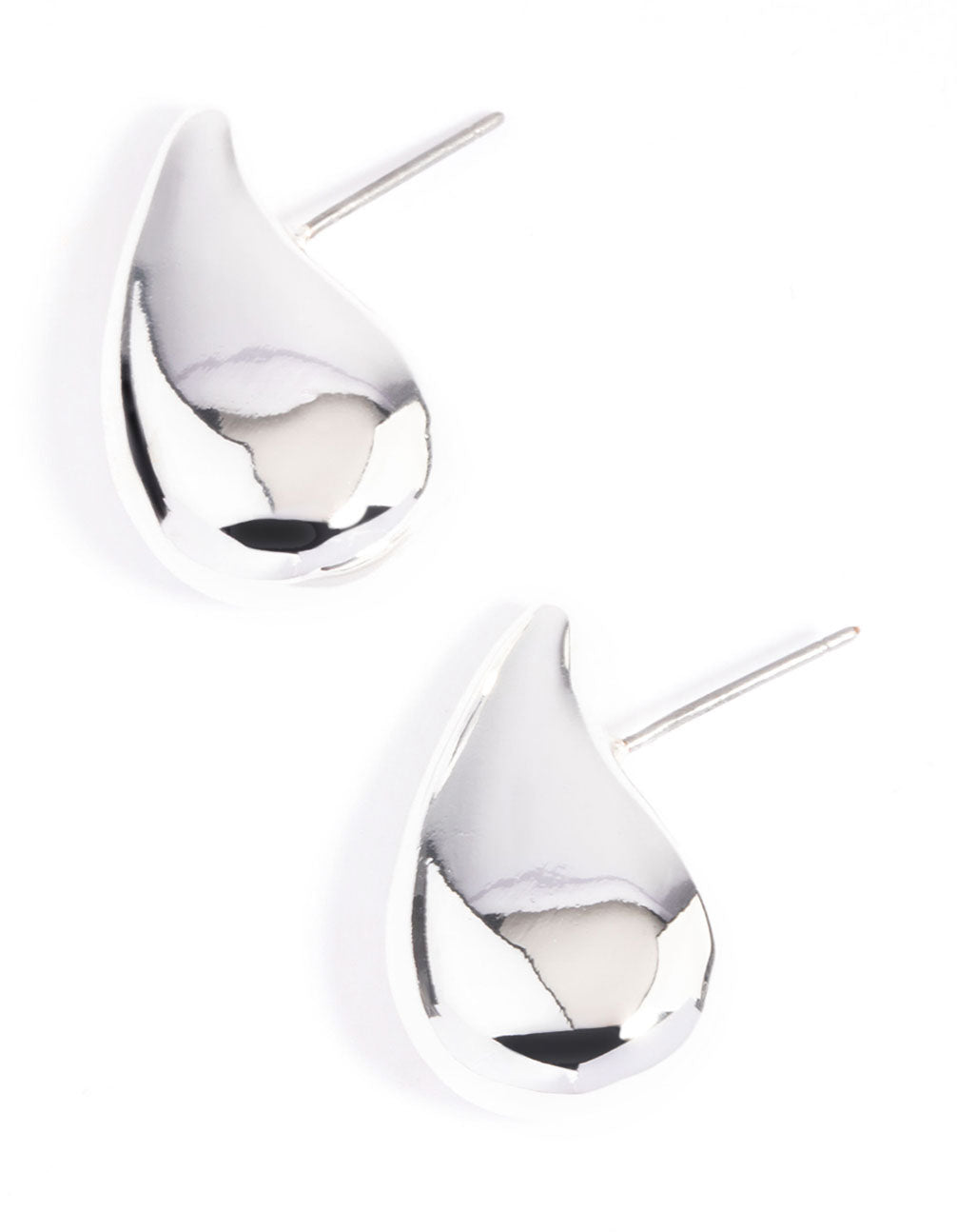 Silver Plated Smooth Teardrop Stud Earrings