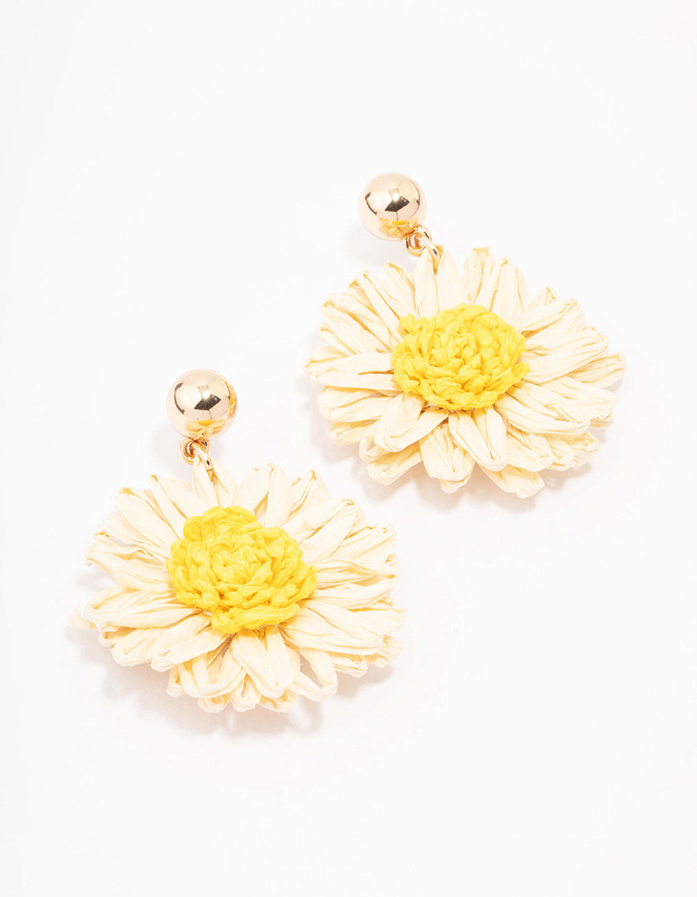 These beautiful drop earrings feature textured, yellow flowers. Perfect for adding a touch of summer to your look!
