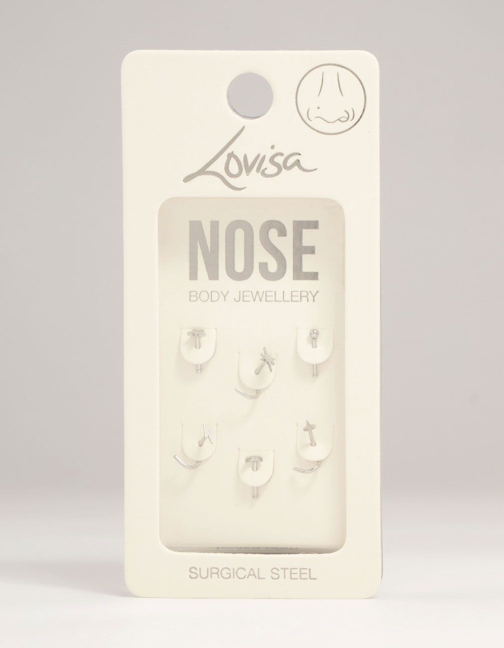 Take your style to new heights with this Surgical Steel Celestial Nose Stud Pack! This nose stud set features six nose studs in a mix of cosmic-inspired designs, including delicate stars, a shimmering moon, a bold lightning bolt, and classic ball shapes. Crafted from surgical steel, these nose studs are durable, comfortable, and perfect for everyday wear. Whether you're pairing them with a cosy jumper or a chic night-out ensemble, these celestial beauties will elevate your look effortlessly. Perfect for anyone who loves unique, dainty jewellery with a cosmic twist!