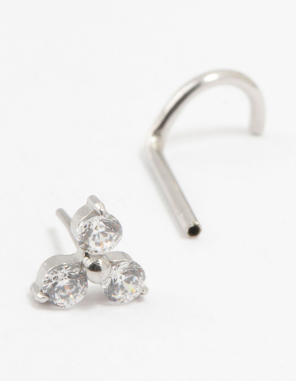 Elevate your nose game with this surgical steel flower stud, a shimmering cubic zirconia centerpiece for edgy elegance to your piercing and the threadless style makes for a comfy secure fit. This nose stud features a threadless back, for a secure fit and the threadless back also makes it easier for stud to be removed.