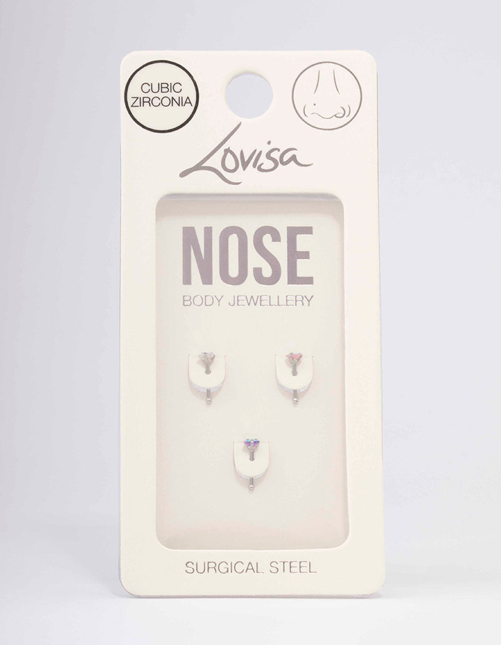 Customise your nose piercing with this set of three, surgical steel studs. This nose piercing pack is crafted from genuine surgical steel, a hypoallergenic and durable material perfect for everyday styling.
