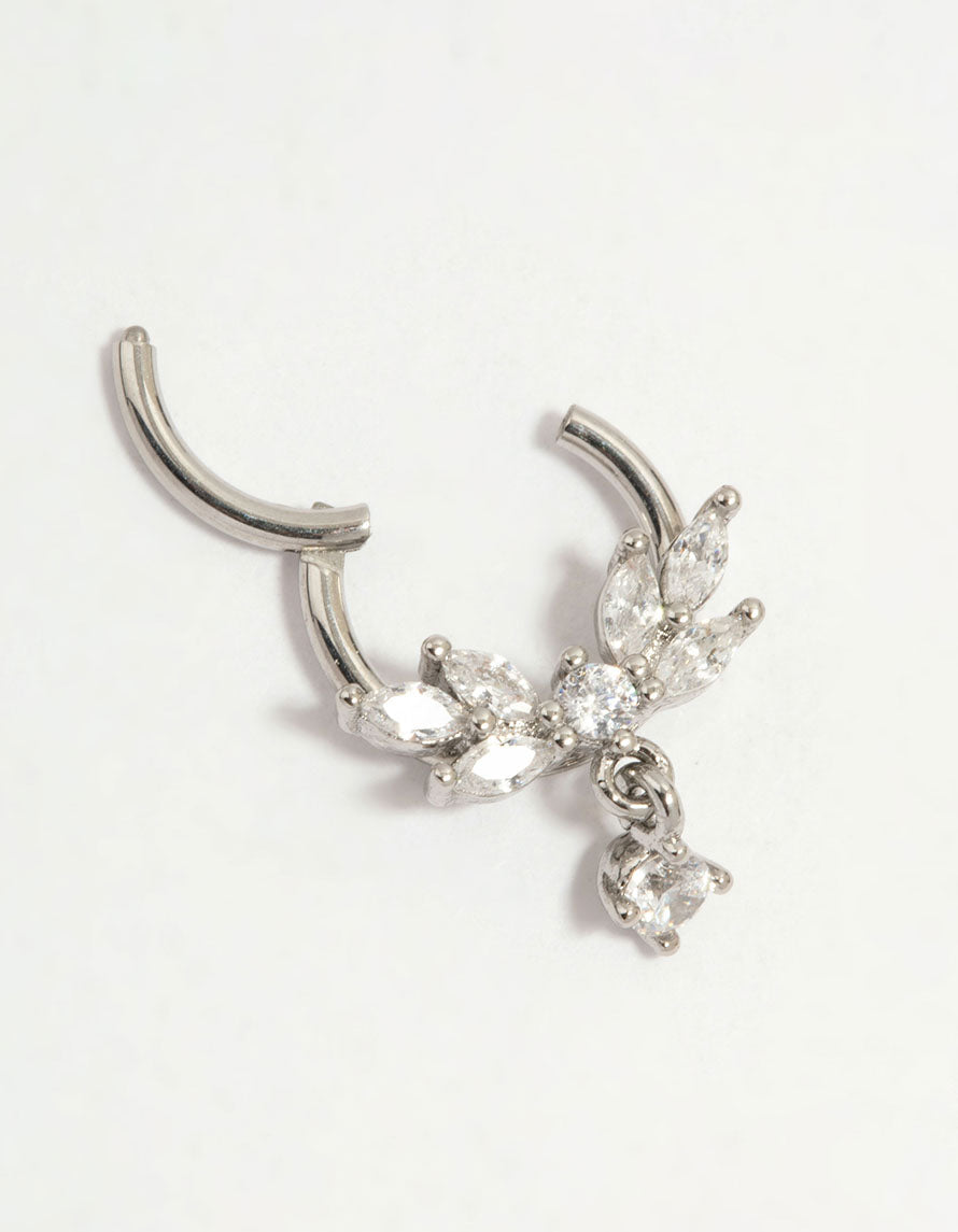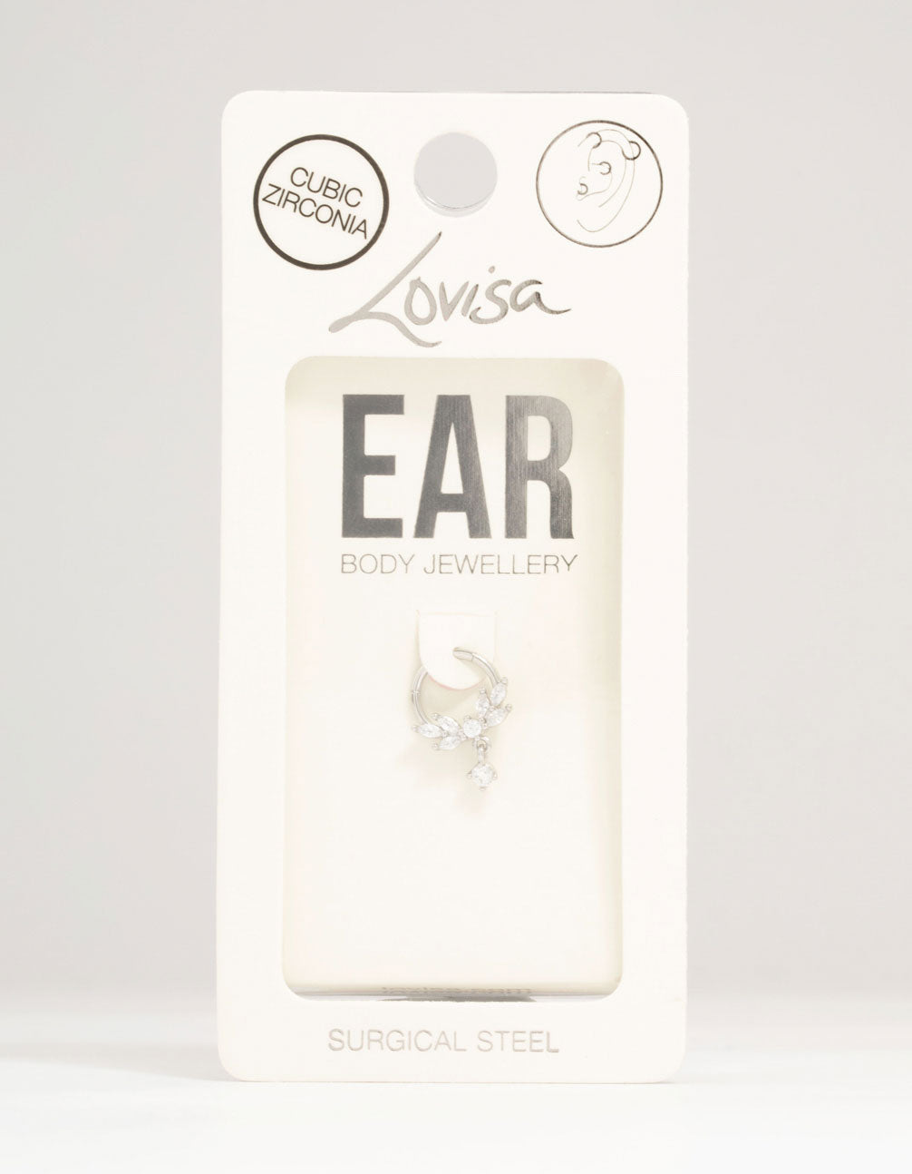 Add a touch of elegance to your look with this Surgical Steel Cubic Zirconia Marquise Drop Clicker Ring . Designed for cartilage piercings, this clicker ring features a delicate marquise-shaped drop adorned with shimmering cubic zirconia crystals, perfect for adding sparkle to your ear stack. Crafted from durable surgical steel, it's built for comfort and style, making it a reliable choice for everyday wear or special occasions. Whether you're dressing up for a night out or keeping it casual, this versatile clicker pairs beautifully with studs, hoops, or other ear piercings. Easy to wear and effortlessly chic, it's a must-have for any jewellery lover looking to elevate their look!