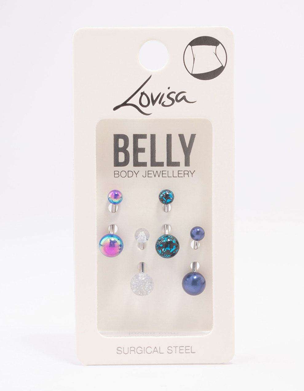 Surgical Steel Galaxy Ball Belly Piercing 4-Pack