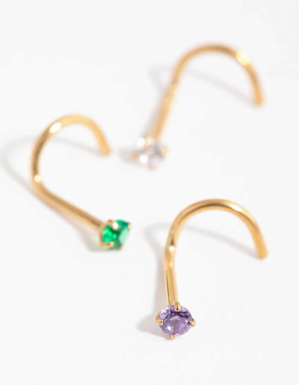 Gold Surgical Steel Classic Gem Nose Stud Pack