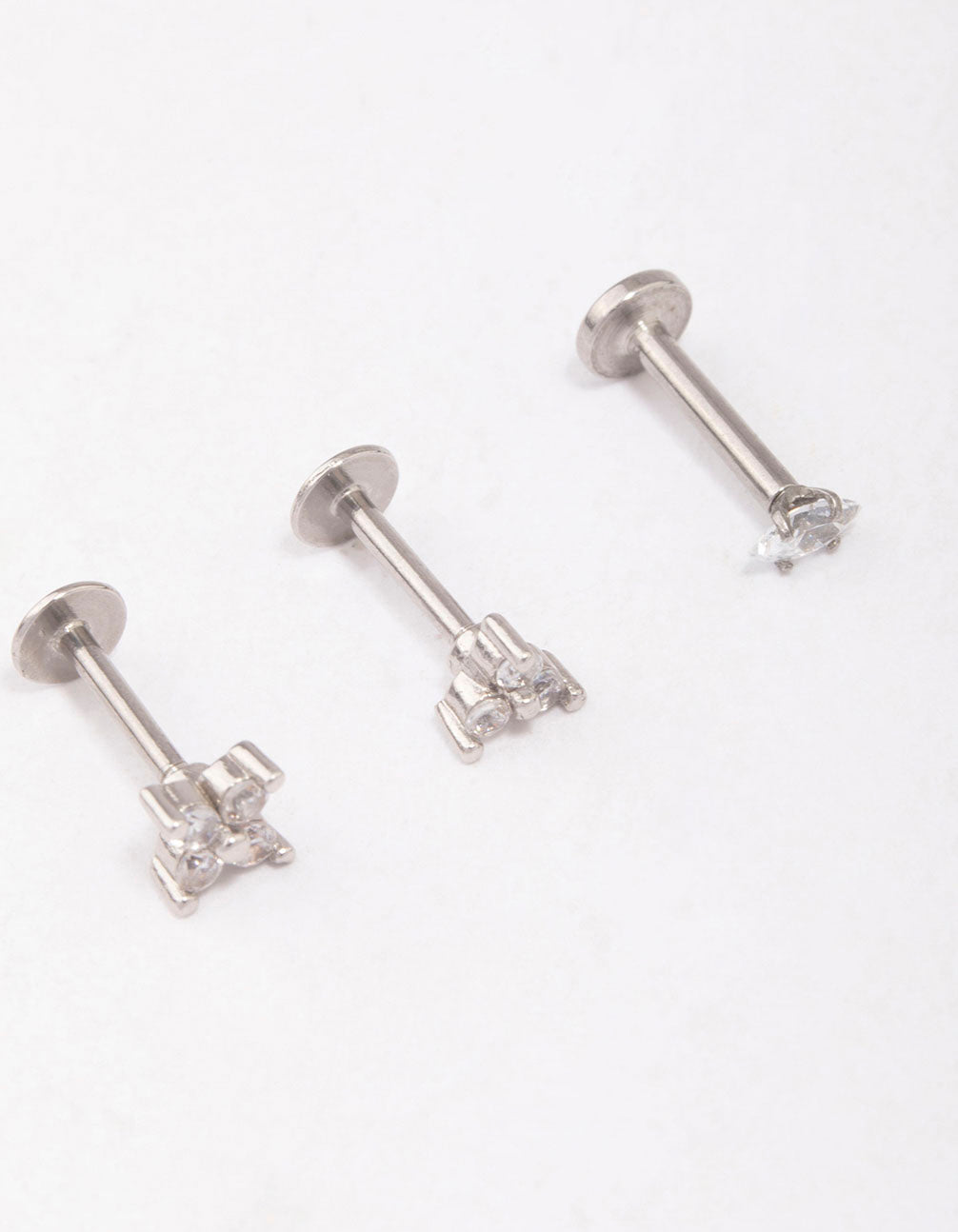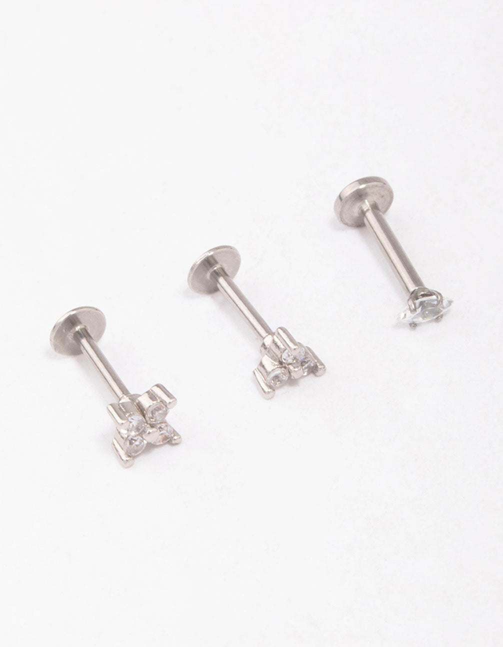 This pack features three, surgical steel flat backs adorned with cubic zirconia crystals for a touch of glamour.