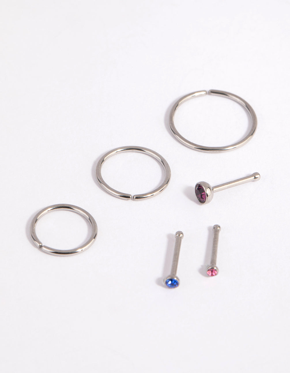 • Surgical Steel Graduated Stud & Hoop Nose Stud & Ring 6-Pack - link has visual effect only