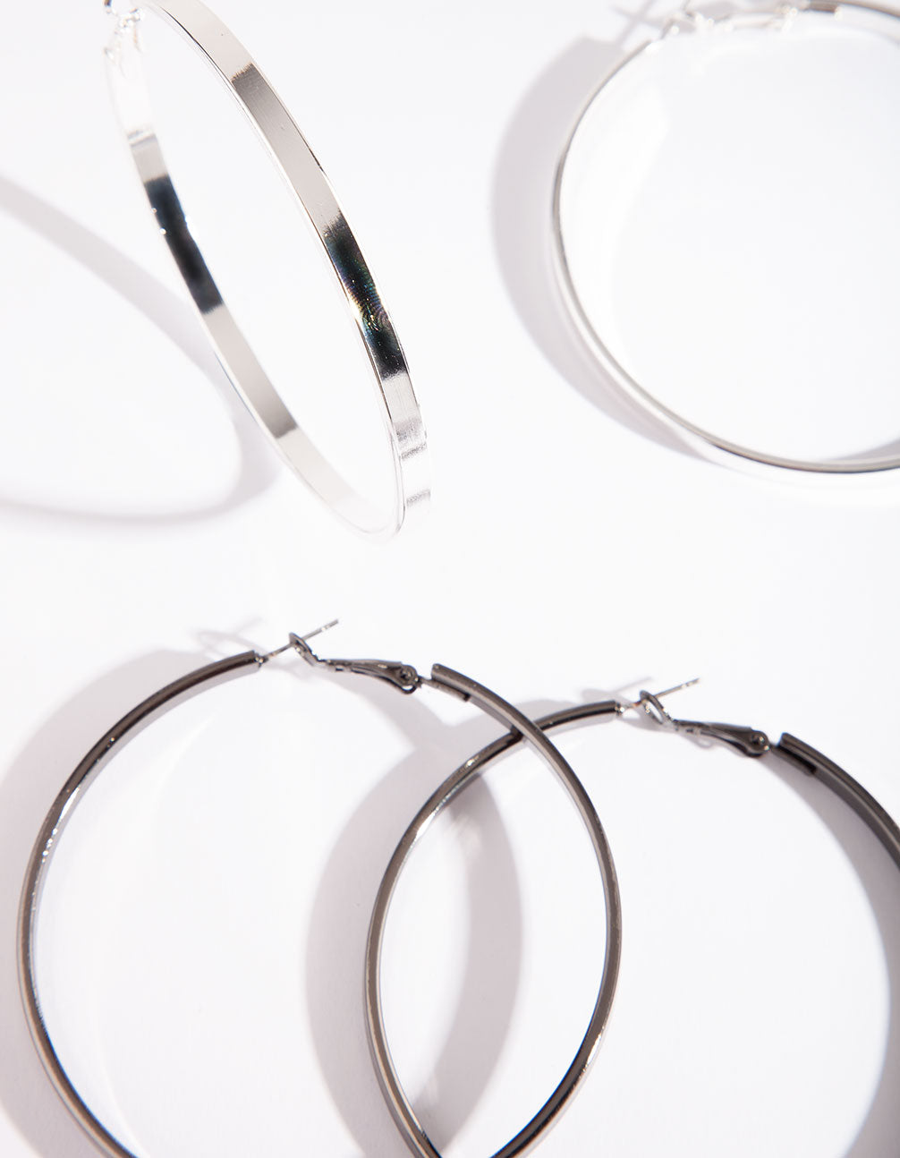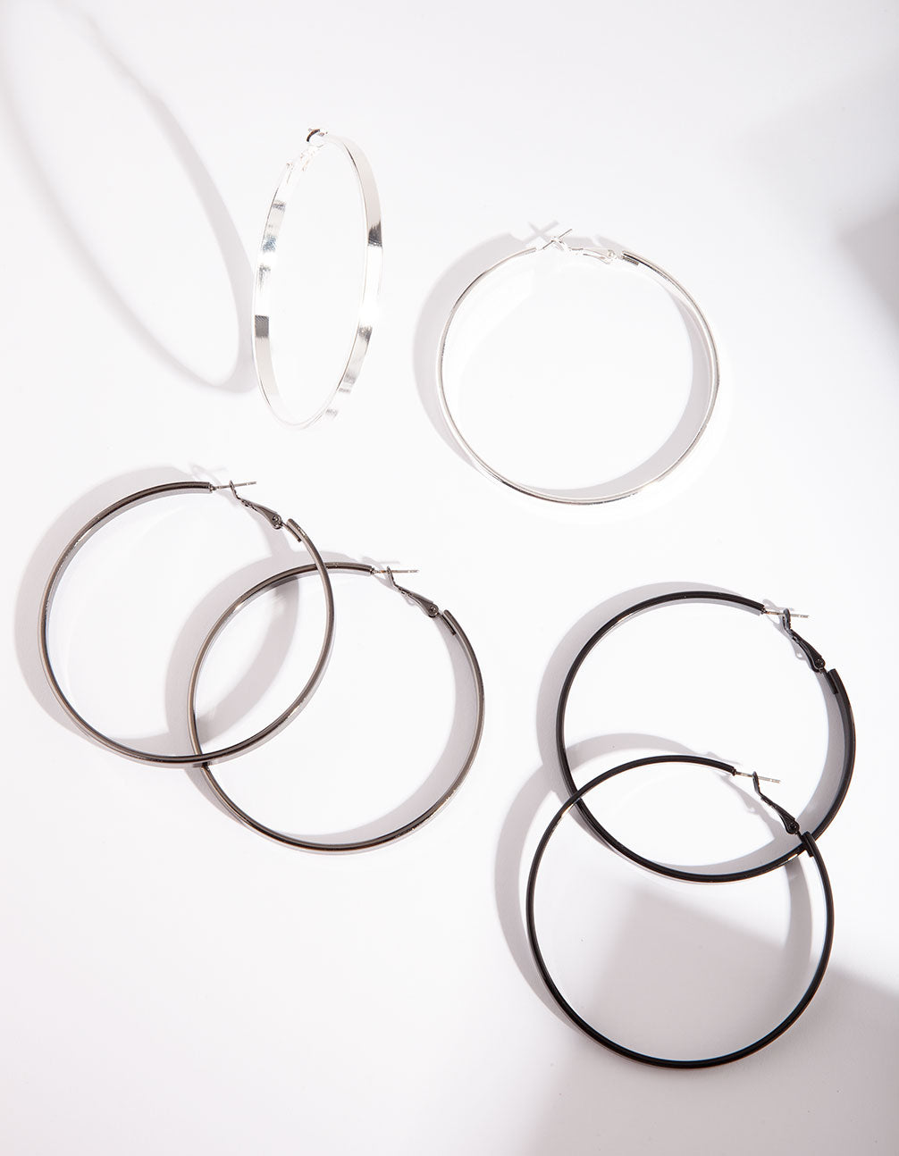 Can‰۪t decide on just one? You don‰۪t have to! This style features a variety of earrings so you can mix and match to suit your mood. This pack boasts a trio of large hoop earrings in black, gunmetal and silver tones!
