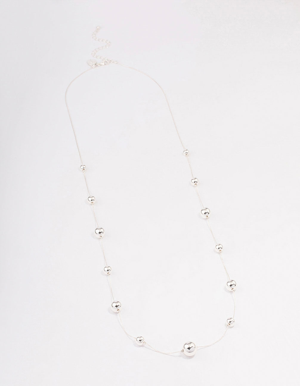 - Style this Silver Molten Ball Long Necklace with a set statement dome stud earrings for a modern 'it-girl' finish to your look.