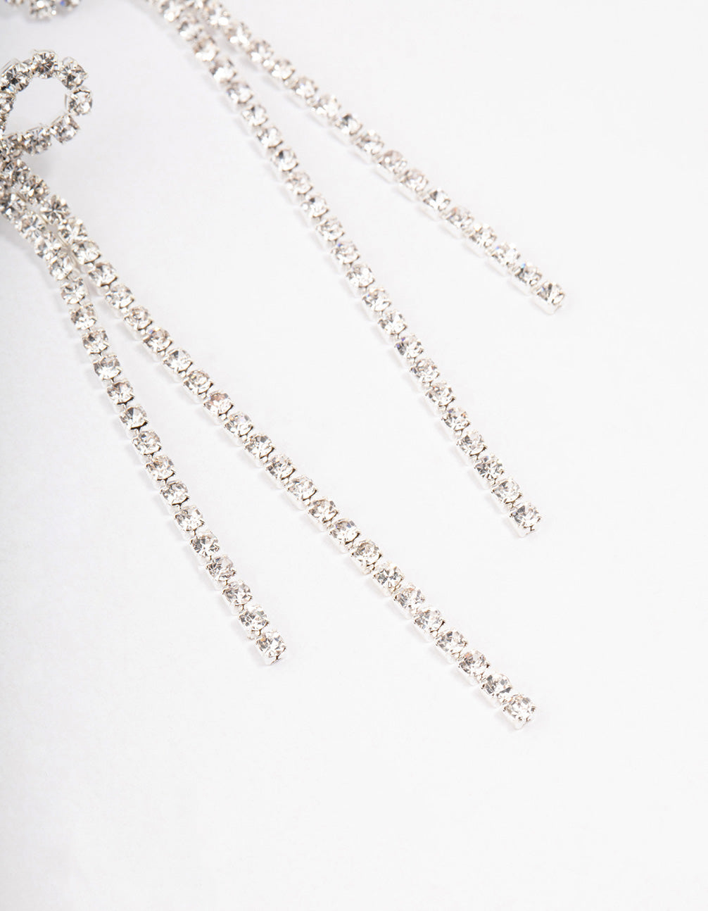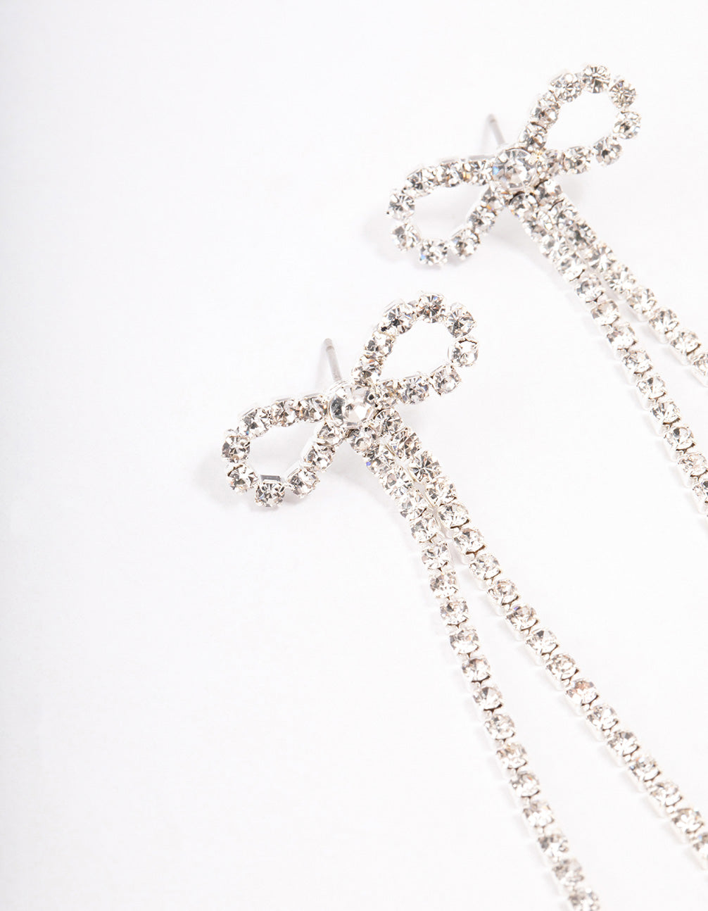 Silver Diamante Cupchain Bow Drop Earrings Silver Diamante Cupchain Bow Drop Earrings Silver Diamante Cupchain Bow Drop Earrings