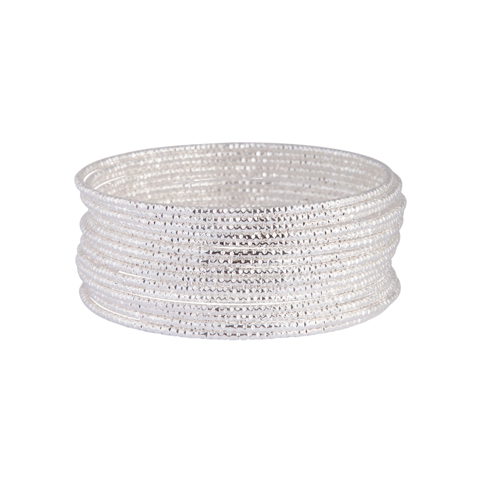 Add some glam to your outfit with this pack of 15 silver-toned diamond cut bangles.
