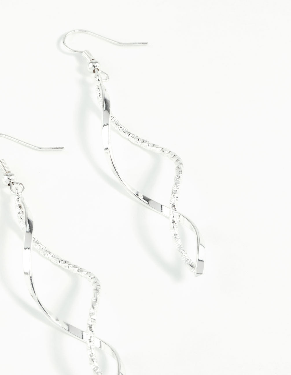 Silver Diamond Cut Twist Earrings