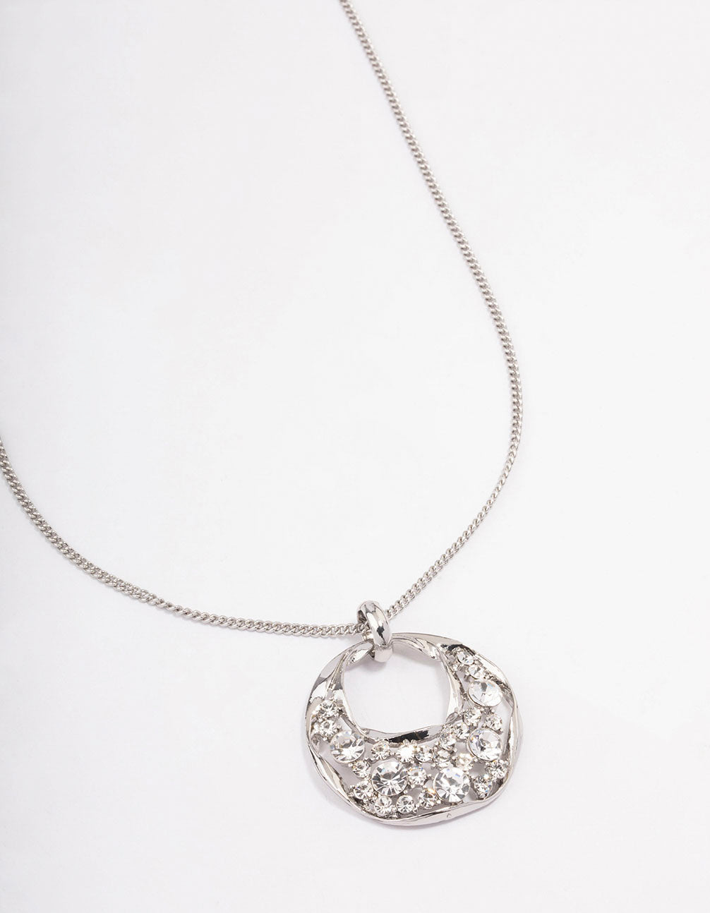 - Style this Silver Diamante Disc Long Necklace with a pair of simple diamante stud earrings for a hint of glamour.
