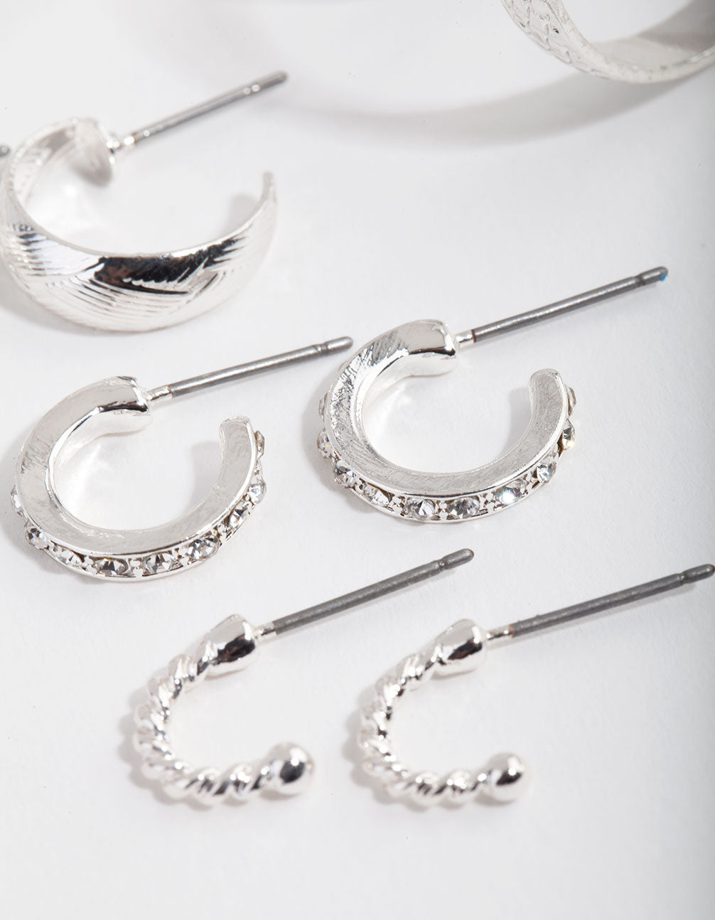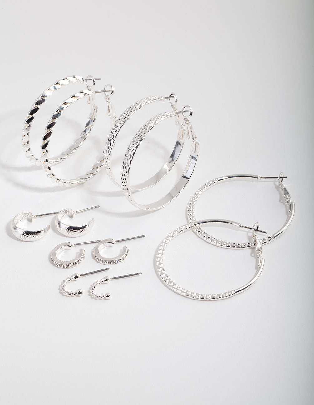 Almost any outfit can be elevated with a pair of hoop earrings. This set features six stunning silver-toned hoops, each with its own unique etched pattern. Wear them standalone, or mix and match to show your individuality.
