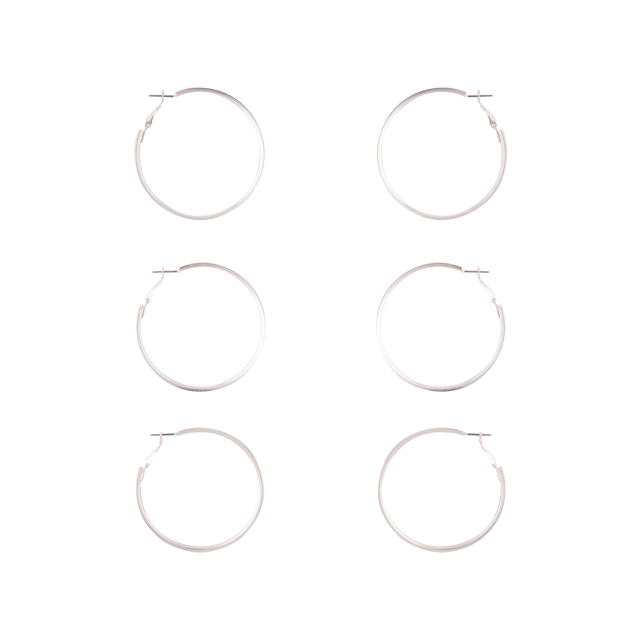 This pack comes with a trio of silver-toned hoop earrings. Each has a different shade of glitter