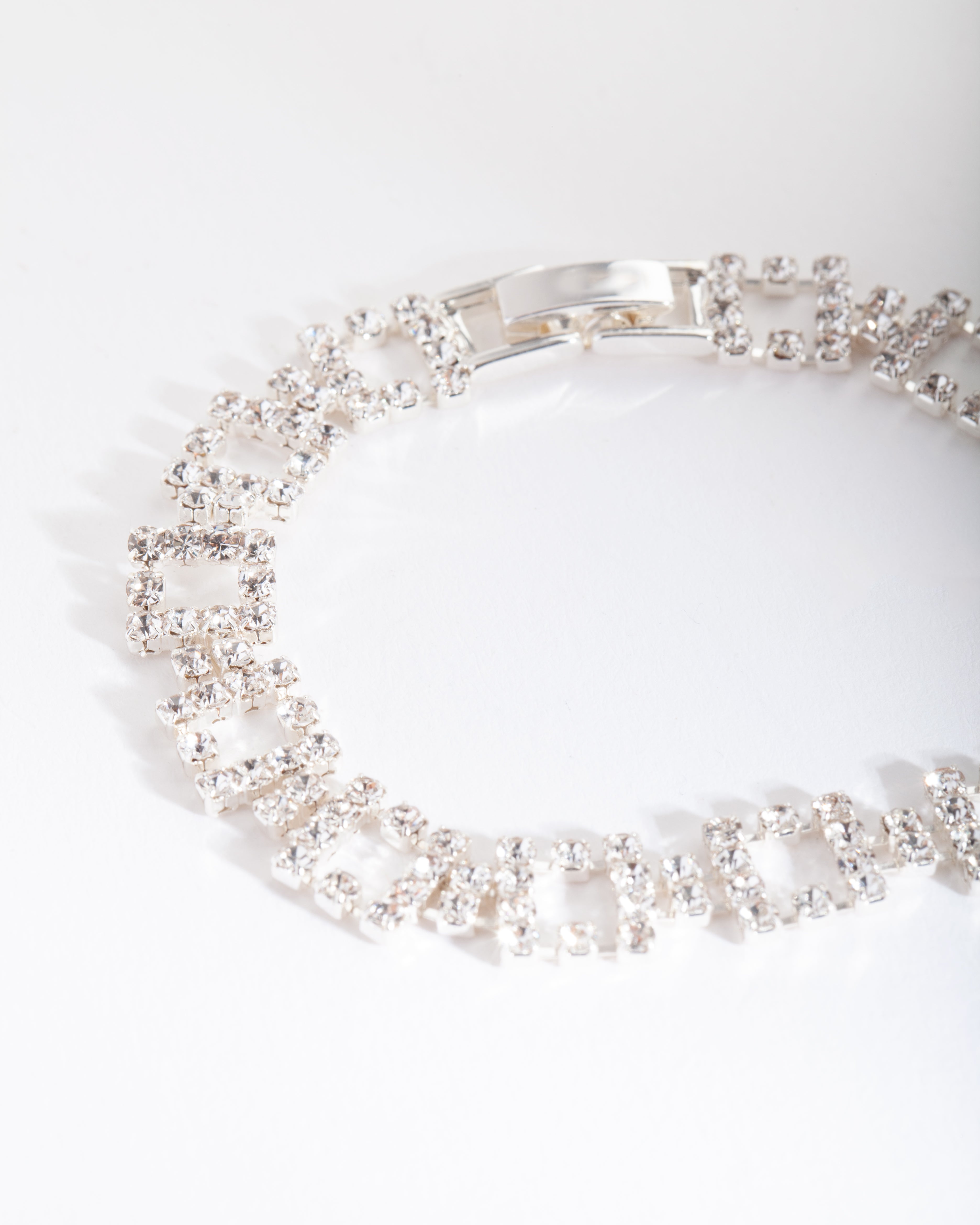 Layer up and create your own bracelet stack. This bracelet features a square cut-out design with diamante embellishments and a silver-toned setting.