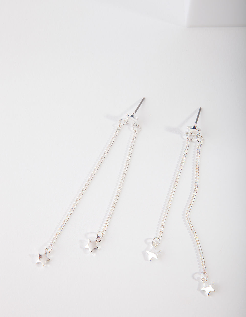 Round out your collection with silver-toned essential styles perfect for any occasion. This pair of earrings feature a star-on-chain design.