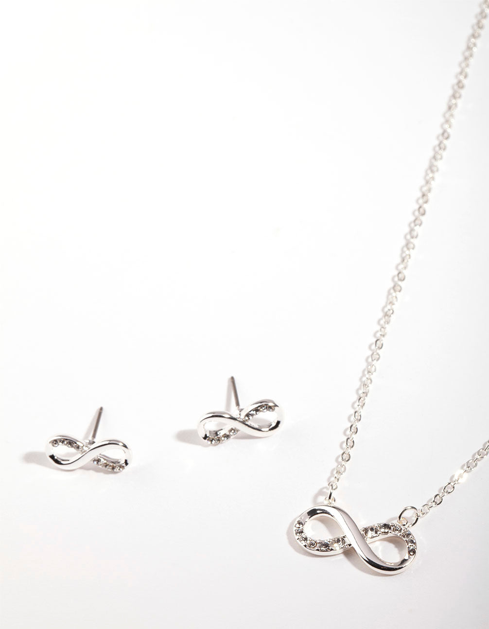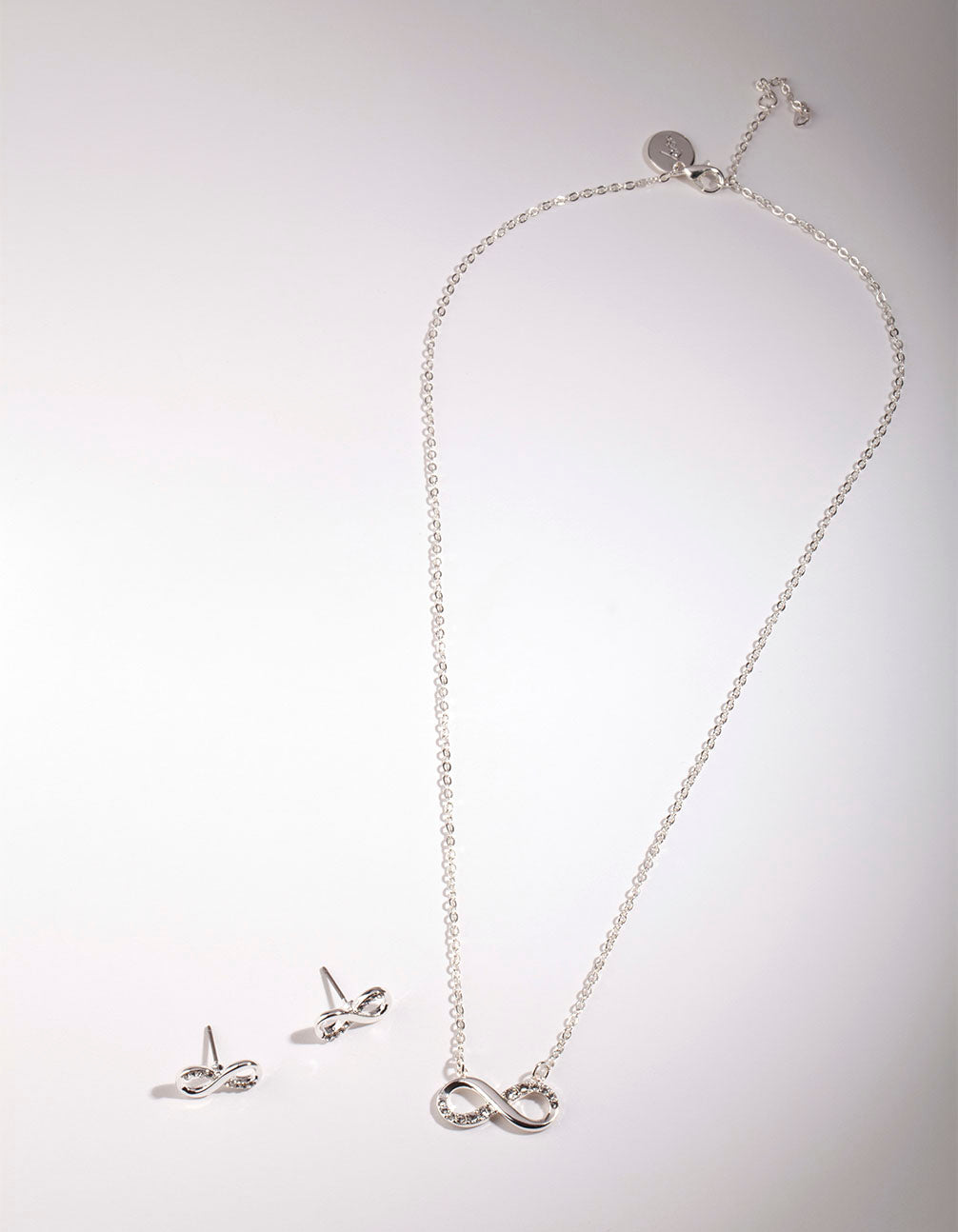 Silver Diamond Simulant Infinity Necklace & Earrings Set