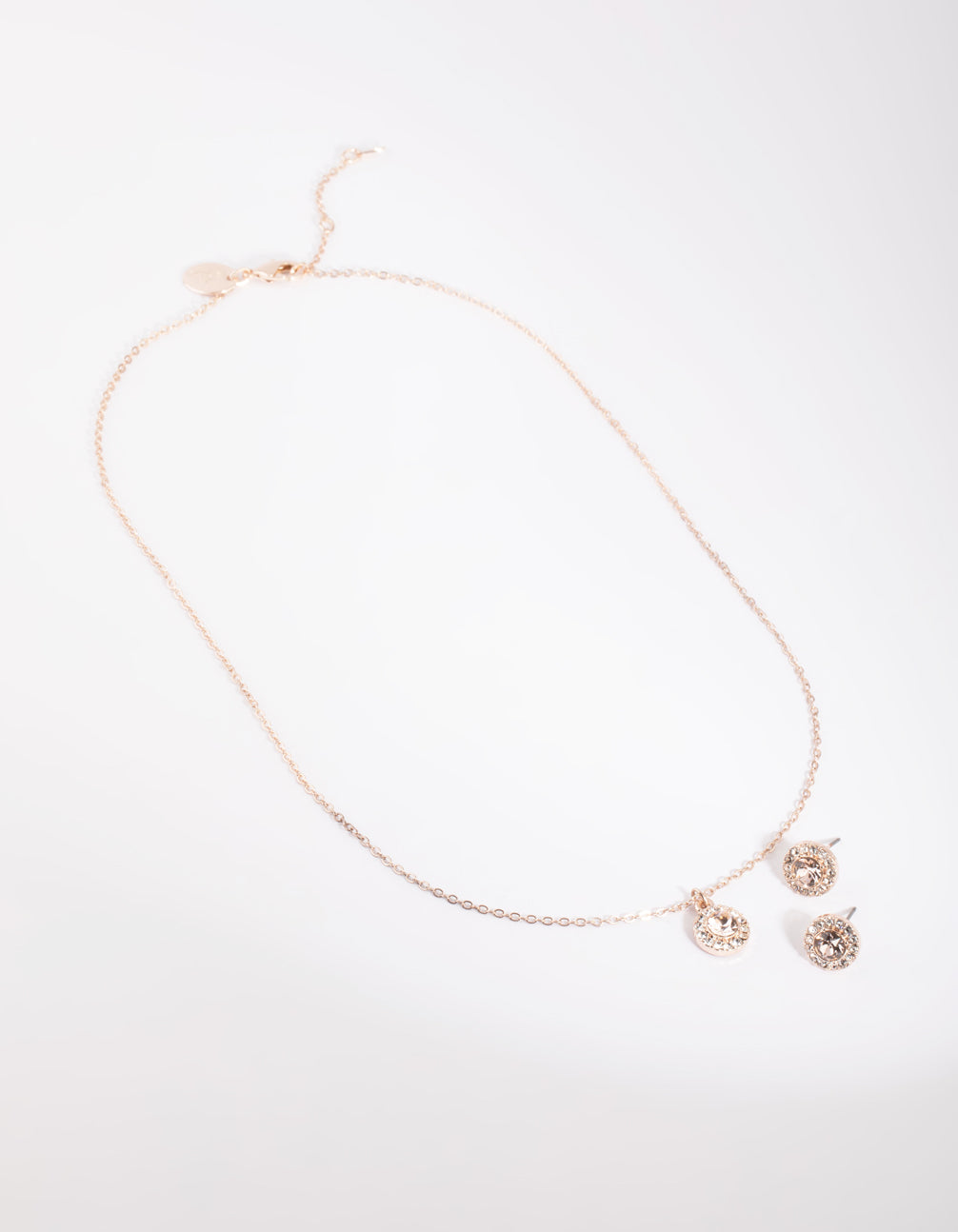 Rose Gold Diamond Simulant Circle Necklace & Earrings Set Rose Gold Diamond Simulant Circle Necklace & Earrings Set Rose Gold Diamond Simulant Circle Necklace & Earrings Set